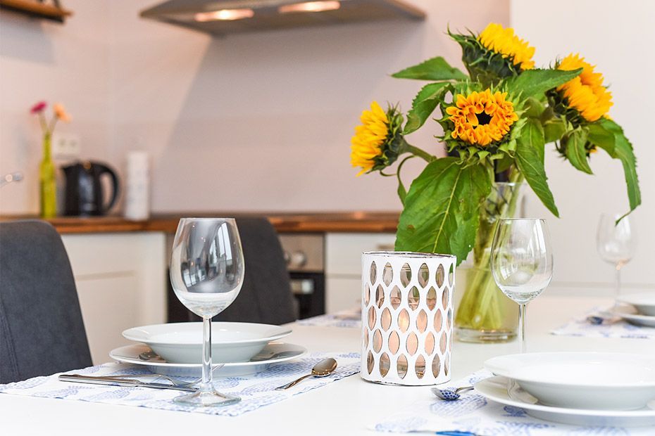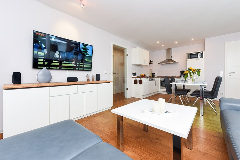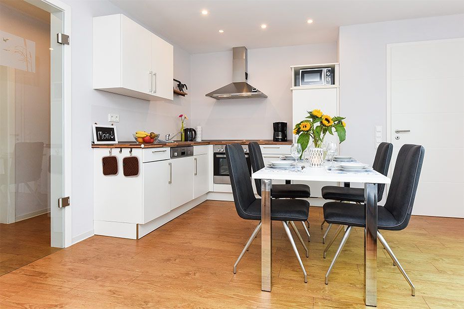 Alle Wohnungen sind sehr geschmackvoll und modern-komfortabel gestaltet und eingerichtet. Die acht Ferienwohnungen verfügen über eine hervorragende und exklusive Ausstattung, z. B. mit modernen Flachbild-Fernsehern, mit sehr schicken Badezimmern mit barrierefreien Duschzugängen und schicken modernen voll ausgerüsteten Küchen (Geschirrspülmaschinen, Mikrowellen, Ceranherde mit Backöfen und vieles mehr).