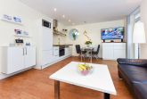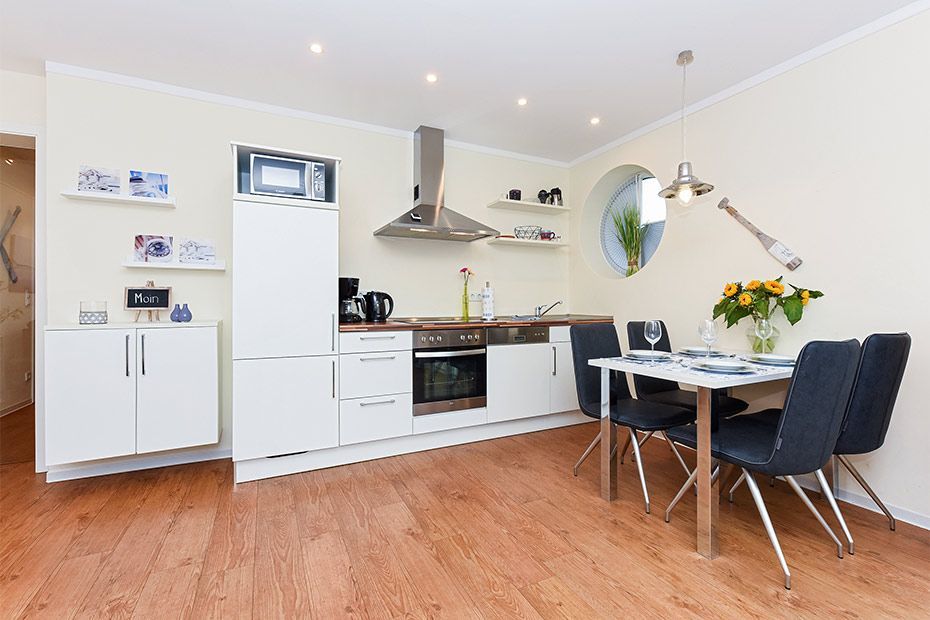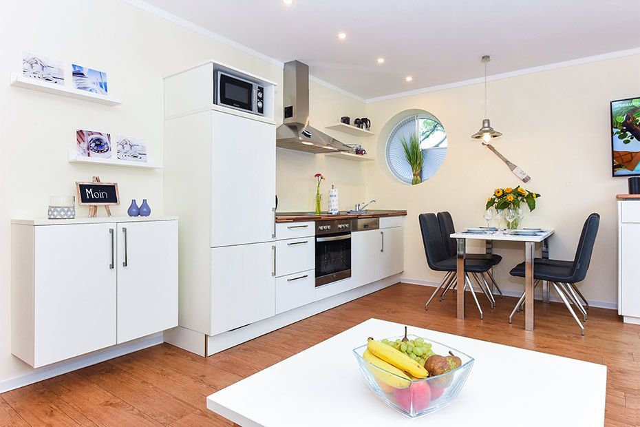 Alle Wohnungen sind sehr geschmackvoll und modern-komfortabel gestaltet und eingerichtet. Die acht Ferienwohnungen verfügen über eine hervorragende und exklusive Ausstattung, z. B. mit modernen Flachbild-Fernsehern, mit sehr schicken Badezimmern mit barrierefreien Duschzugängen und schicken modernen voll ausgerüsteten Küchen (Geschirrspülmaschinen, Mikrowellen, Ceranherde mit Backöfen und vieles mehr).