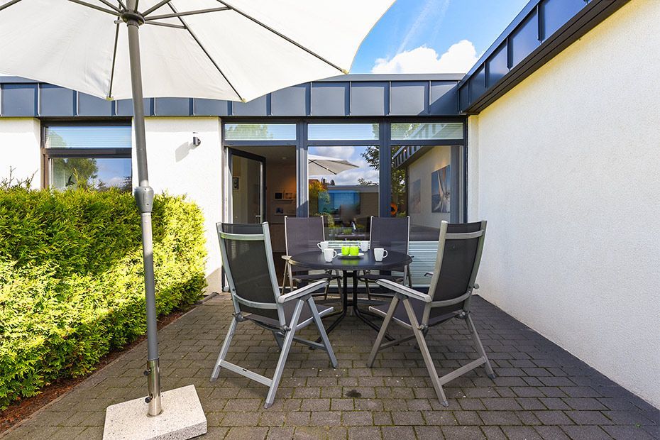 An allen Wohnungen gibt es Terrassen, in Wohnung „Francis Drake“ sogar zwei in verschiedene Himmelsrichtungen. Die Terrasse der Ferienwohnung „Christoph Kolumbus“ liegt in einem Attrium des Hauses, das Ihnen in dieser Wohnung exklusiv zur Verfügung steht.