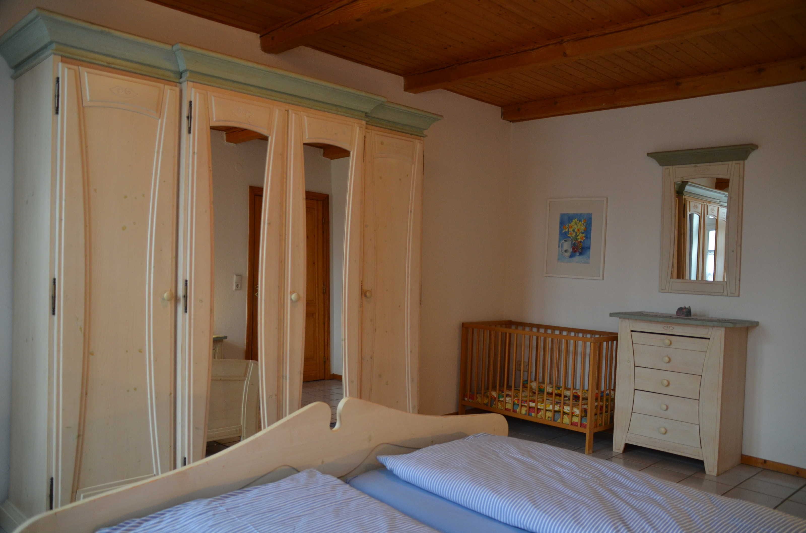 Außerdem sind ein Kinderbett und ein Hochstuhl vorhanden.