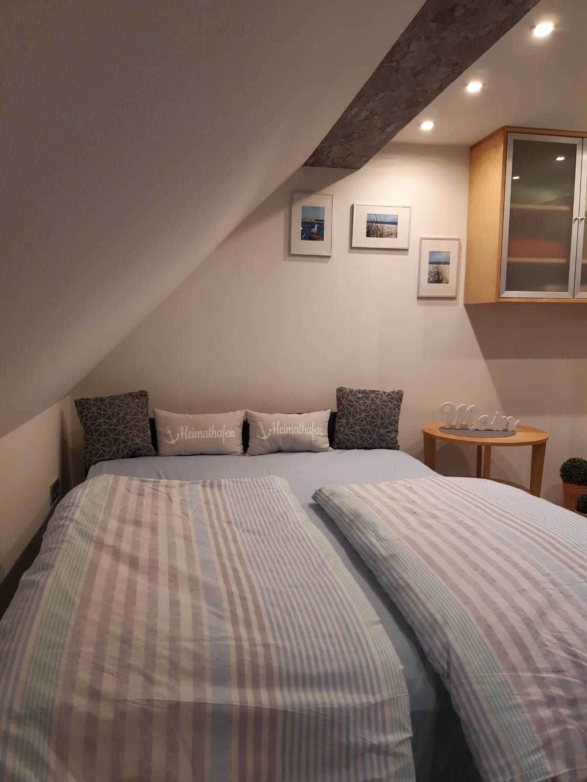 Ruhe und Entspannung pur.Liebevoll eingerichtete, gemütliche Oberwohnung (Nichtraucher), mit separatem Eingang. Das in den Giebel gebaute Doppelbett erreicht man mühelos über eine Leiter. Zusätzlich gibt es ein sehr komfortables, ausziehbares Luxussofa. Wunderschöne, ruhige Ferienwohnung in unmittelbarer Nähe zur Autobahn (2,8km). Die Wohnung ist mit einem Bad, Dusche, WC und Föhn ausgestattet. Handtücher und Bettwäsche sind inkl.. Kostenloses W-LAN ist vorhanden. Der Wohn-Essraum hat eine sehr großzügig eingerichtete Küche mit Geschirrspüler, Kaffeevollautomaten und separatem Gefrierfach. Fahrräder können sicher abgestellt werden. Gartennutzung mit Sitzgelegenheit und Grillen ist möglich. Lassen Sie bei uns die Seele baumeln. Die angrenzenden Niederlande sind sehr schnell zu erreichen und ein Besuch im Thermalbad Neuschanz ist immer wieder sehr erholsam. Angeln, Rad fahren, Schiffsüberführungen von Luxuslinern direkt vor der Haustür und Shoppen in der maritimen Stadt Leer, sind unvergessliche Urlaubserlebnisse. Ein Badesee befindet sich in unmittelbarer Nähe (2,6km). Einkaufsmöglichkeiten sind unweit der Ferienwohnung vorhanden.