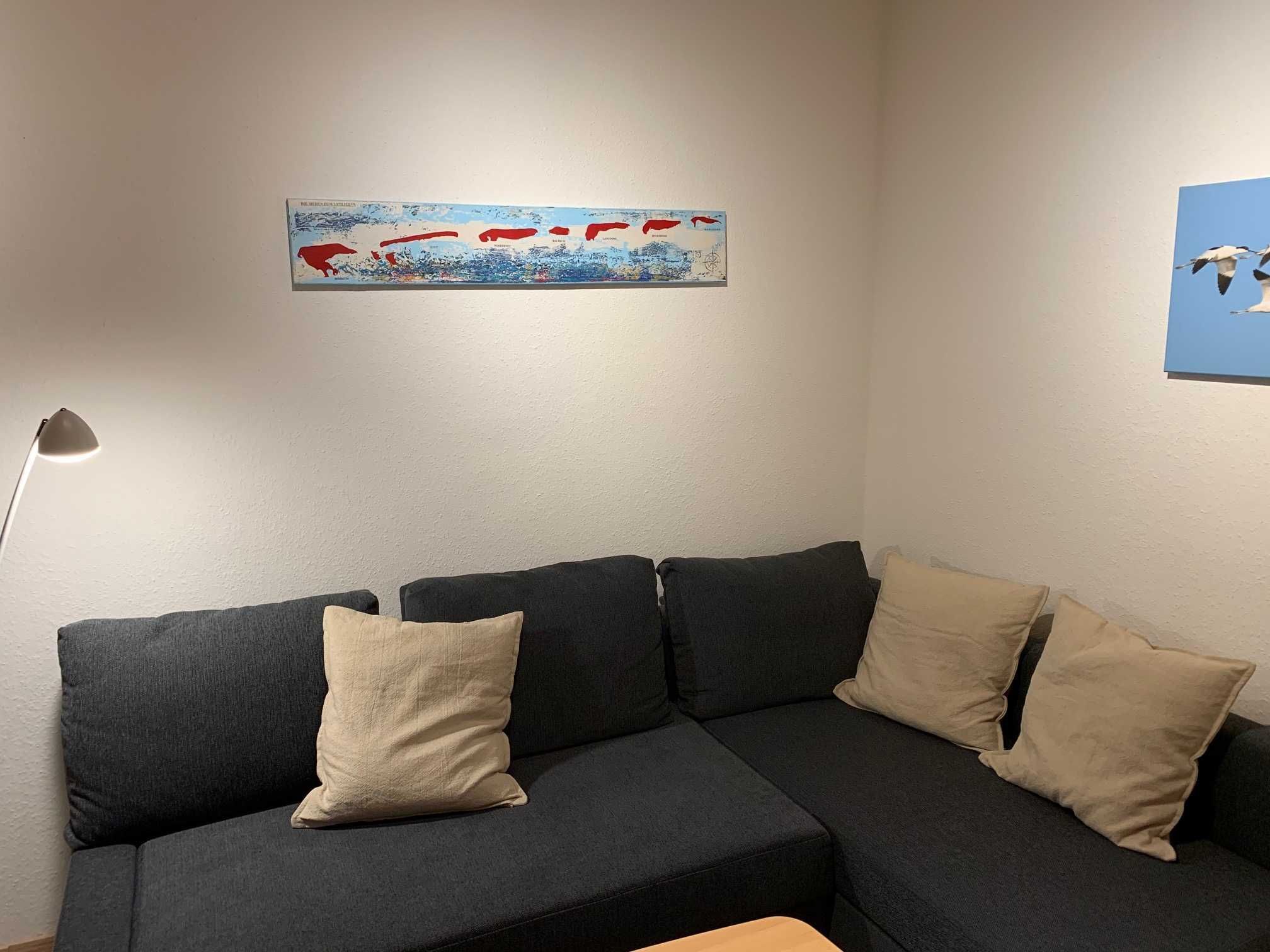 Der Säbelschnäbler bietet auf seinen 50 qm ein modernes Wohn-Esszimmer mit integrierter Küchenzeile und zwei Schlafzimmer für bis zu drei Personen. Die moderne Wohnecke lädt zum Entspannen ein wenn es draußen gerade etwas ungemütlicher ist.