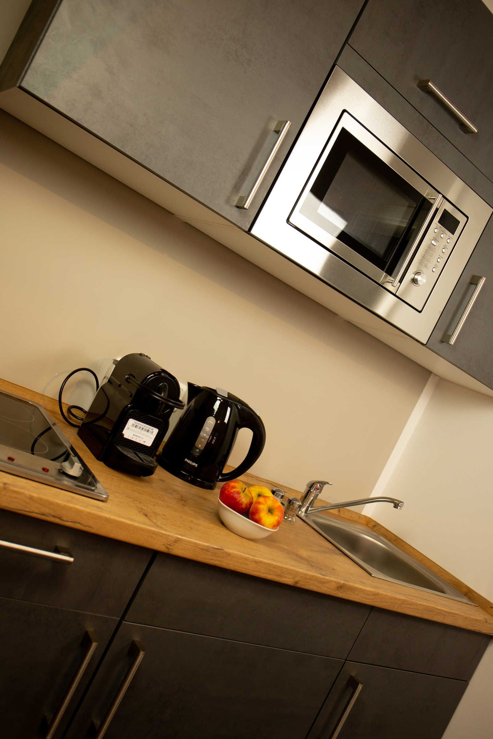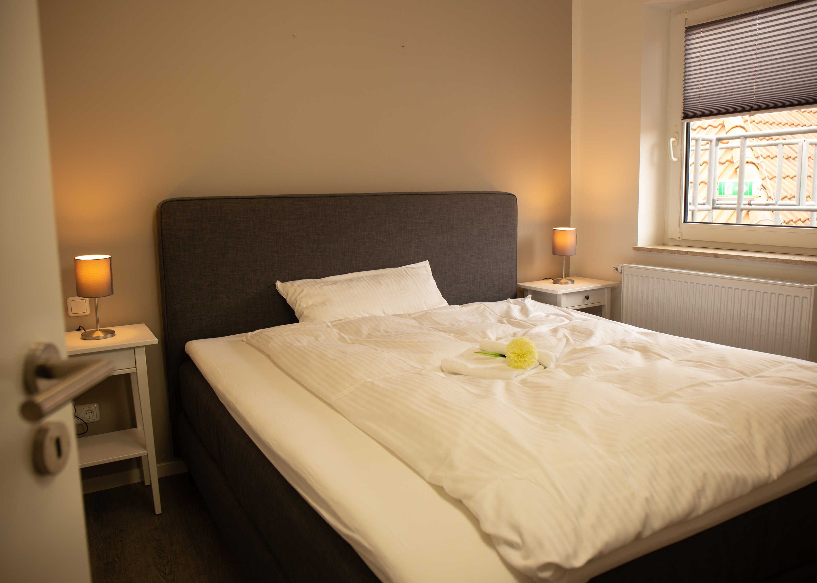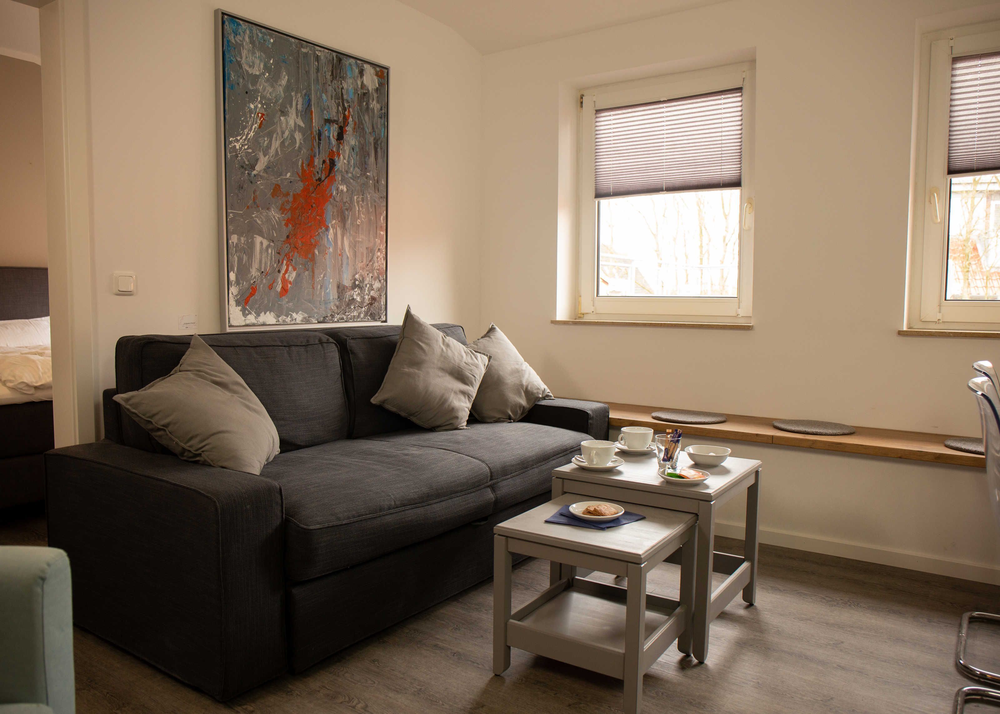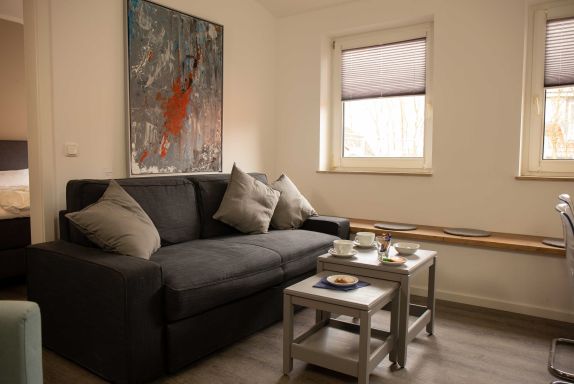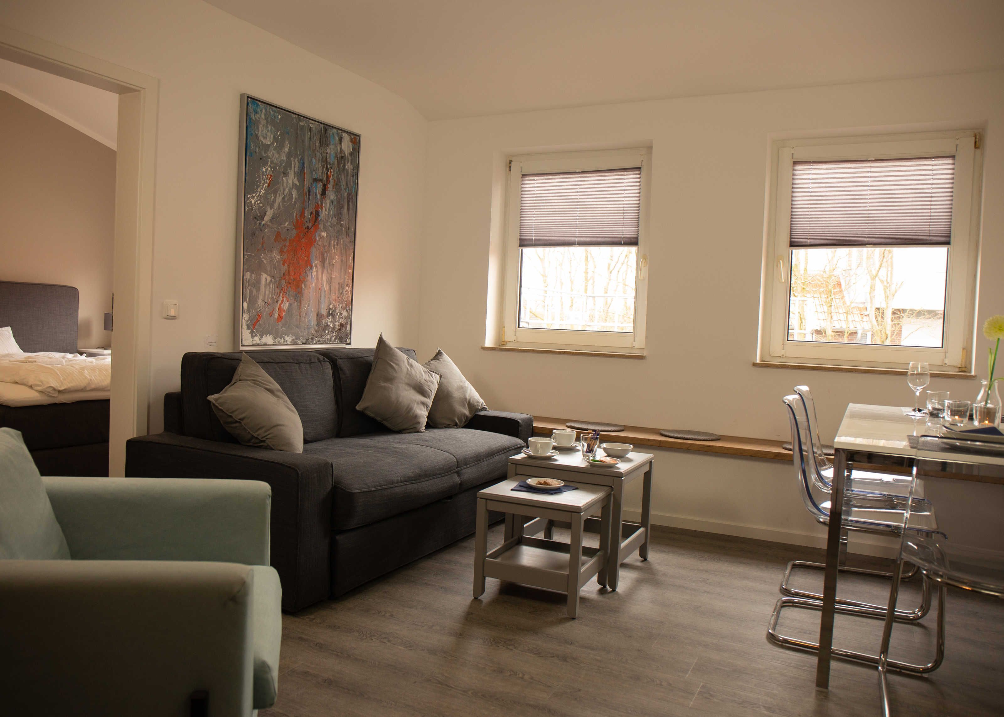 Ihre Unterkunft verfügt über kostenfreies WLAN. Der Wohnbereich bietet zudem eine gut ausgestattete offene Küchenzeile mit Kühlschrank, Gefrierfach, Kaffeemaschine, Wasserkocher und Mikrowelle. Das Appartement verfügt über einen Esstisch für 4 Personen und einen behaglichen Sitzbereich. Im separaten Schlafzimmer steht Ihnen ein komfortables Boxspringbett zur Verfügung. Im stilvollen Badezimmer befinden sich eine große begehbare Dusche sowie ein Waschtisch mit Föhn. Des Weiteren ist im Buchungspreis ein Wäschepaket mit Handtüchern und Bettwäsche enthalten.