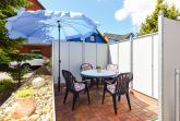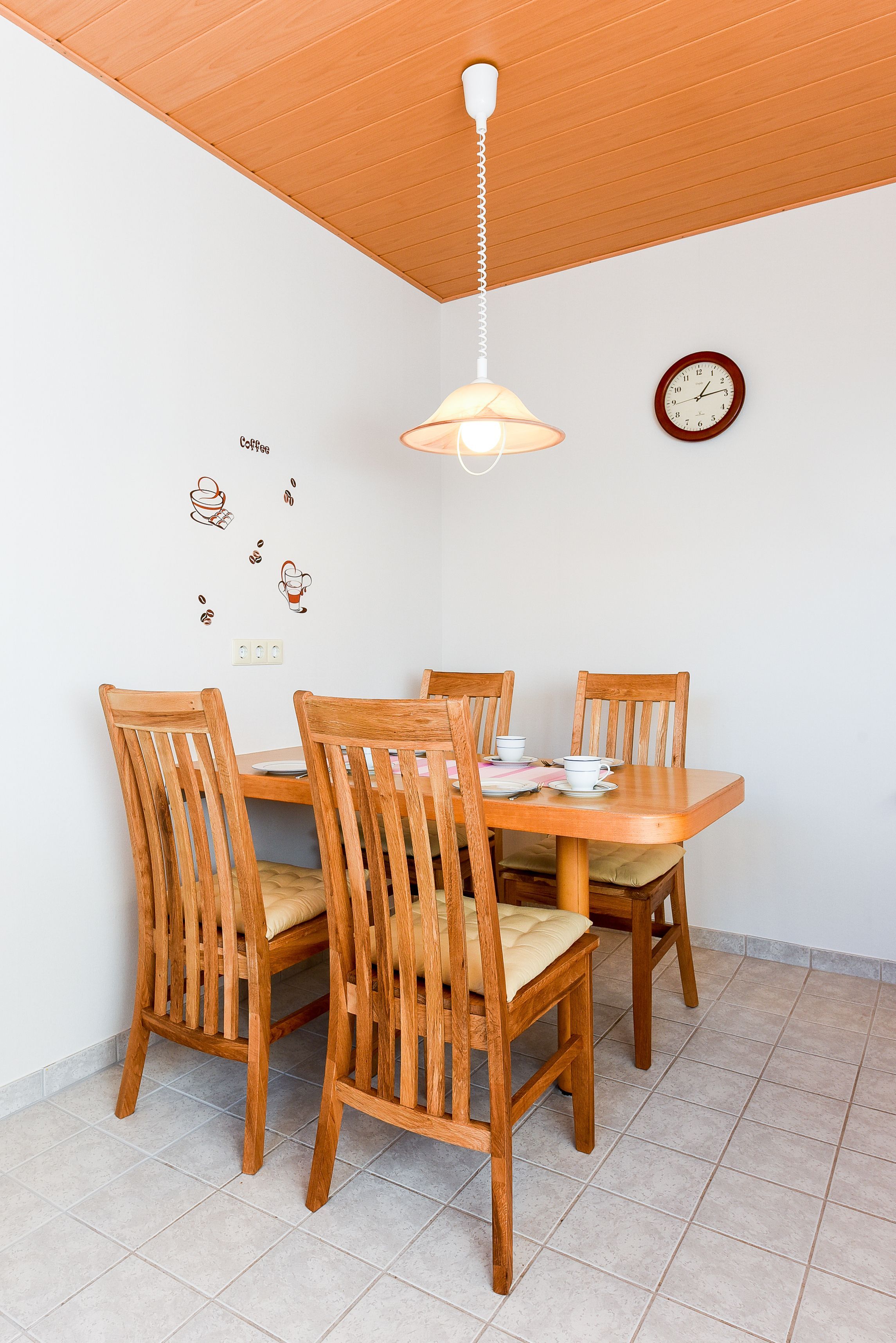 Größe ca. 120 Quadratmeter, Wohnzimmer. Küche mit Esstisch, Schlafzimmer, zweites separates Schlafzimmer/Kinderzimmer, Badezimmer mit Dusche, Waschtisch und WC, separates zweites WC, Erdgeschoss, Terrasse, optimal für 2 bis 4 Personen.