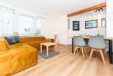 Größe ca. 70 Quadratmeter, Wohnzimmer, Küche, Schlafzimmer, zweites separates Schlafzimmer Badezimmer mit Dusche, Waschtisch und WC, Terrasse (Sitzgruppe im Garten), Parkplatz (reserviert), Koffer-/Abstellraum, optimal für 2 bis 4 Personen ab 16 Jahren.