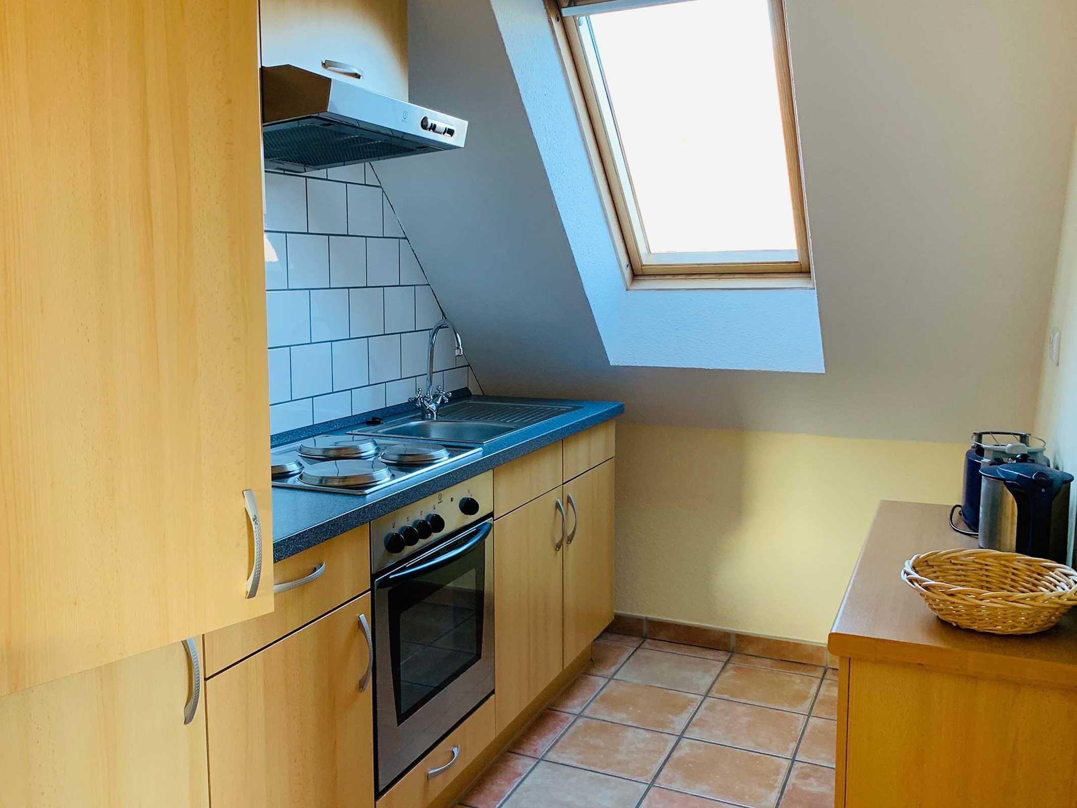 Großzügige und gemütlich eingerichtete Nichtraucher-Ferienwohnung für 2 Personen und 1 Kleinkind mit großem (ca. 10qm) Balkon. Die Wohnung besteht aus einem Schlafzimmer mit Doppelbett (Zustellmöglichkeit für ein Kinderbett), Wohnzimmer mit Essbereich, komplett eingerichteter Küche, Kinderhochstuhl. Haustiere sind nicht gestattet. Pkw-Einstellplatz vorhanden. Fahrräder können untergestellt werden.