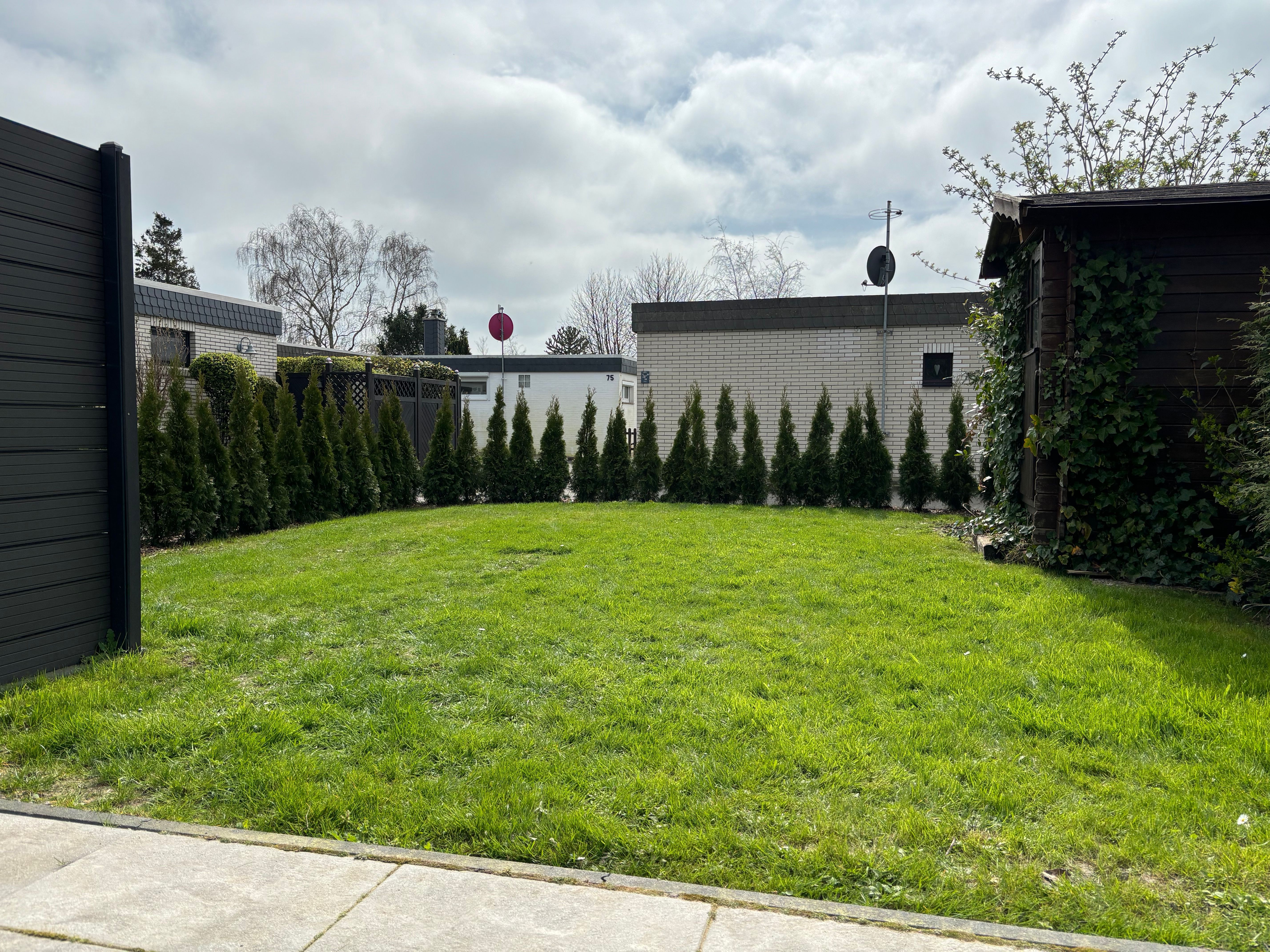 Der Garten ist nach Süden ausgerichtet und neu eingefriedet. Das Haus liegt in einer Sackgasse und damit sehr ruhig. Bei Bedarf spendet eine Markise Schatten.