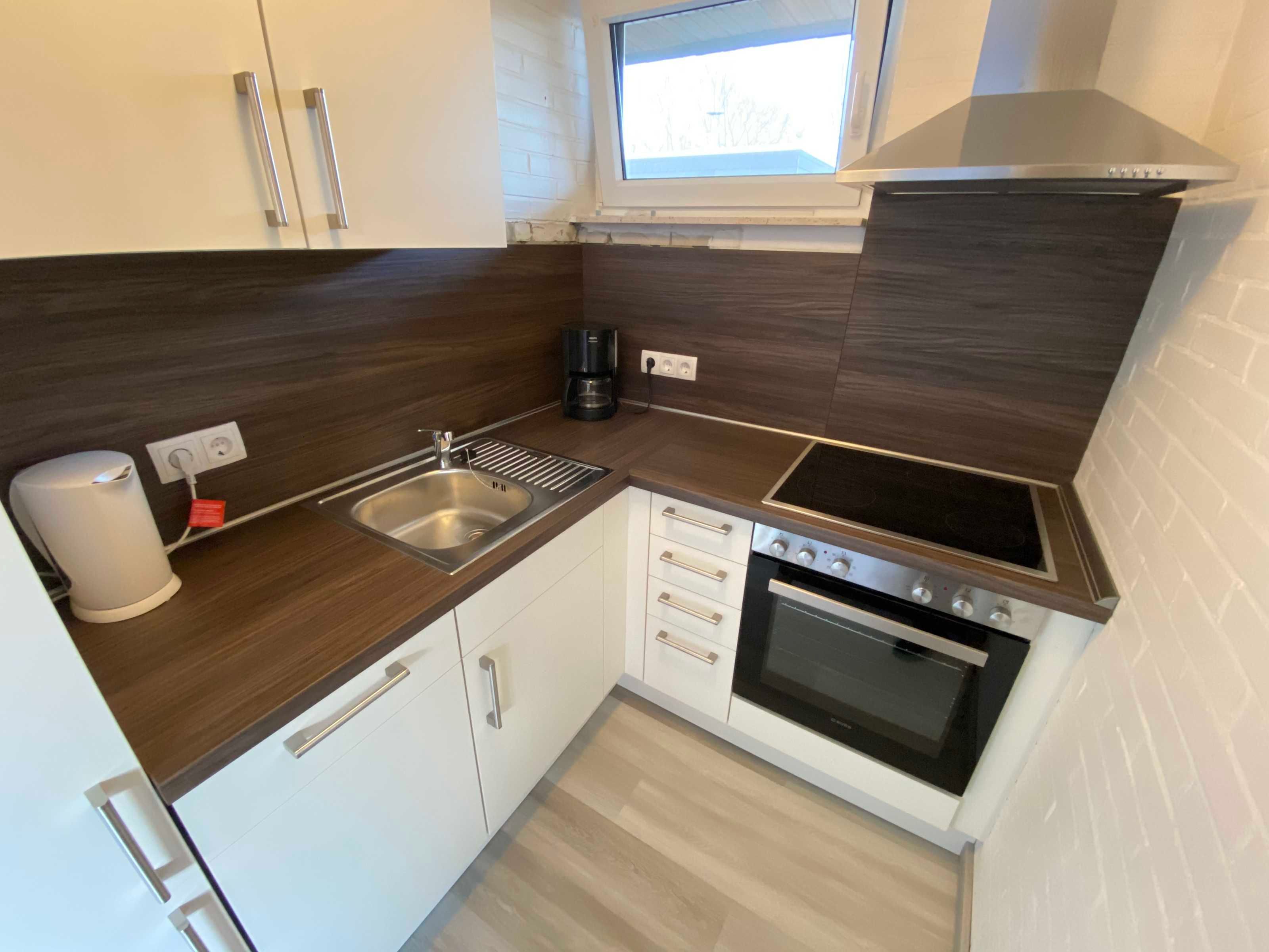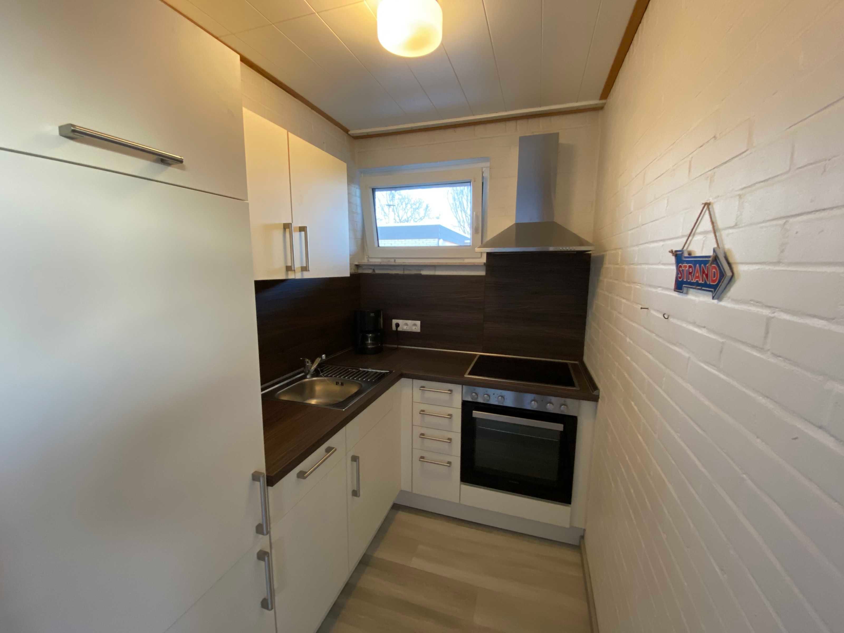 Die Küche ist ausgestattet mit einer Geschirrspülmaschine, einem Ofen, 4-Platten Herd und großem Kühlschrank. Geschirr und Besteck sind in ausreichender Anzahl vorhanden. Eine Dolce Gusto Kapselmaschine, eine Filterkaffeemaschine sowie Wasserkocher runden die Ausstattung ab.
