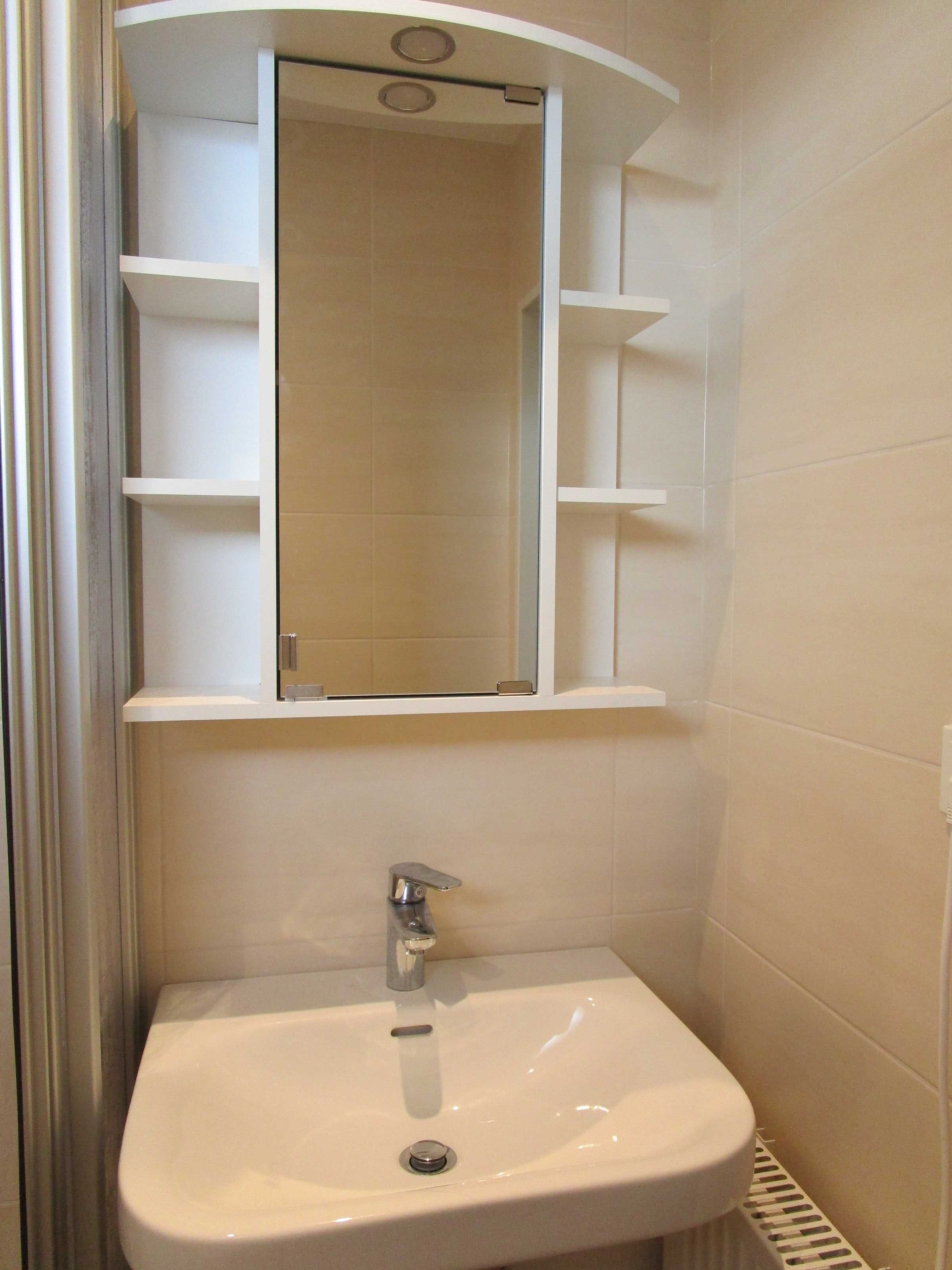 Eine Waschmaschine ist ebenso vorhanden wie ein Kinderstuhl.