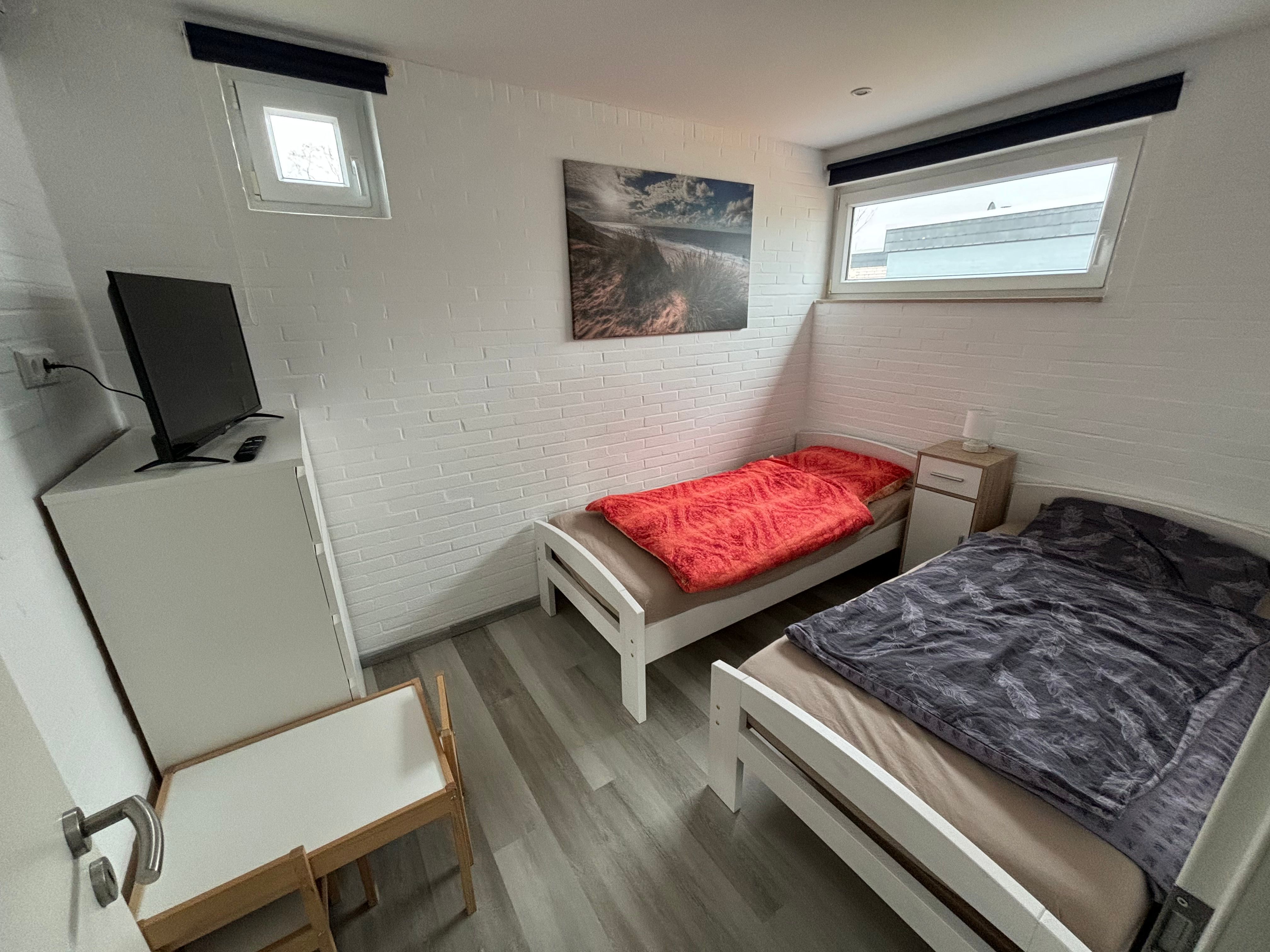 Im Kinderzimmer bzw. zweiten SChlafzimmer befinden sich zwei Einzelbetten, ein kleiner Tisch mit Stühlen, diverse Spiele und ein Fernseher.