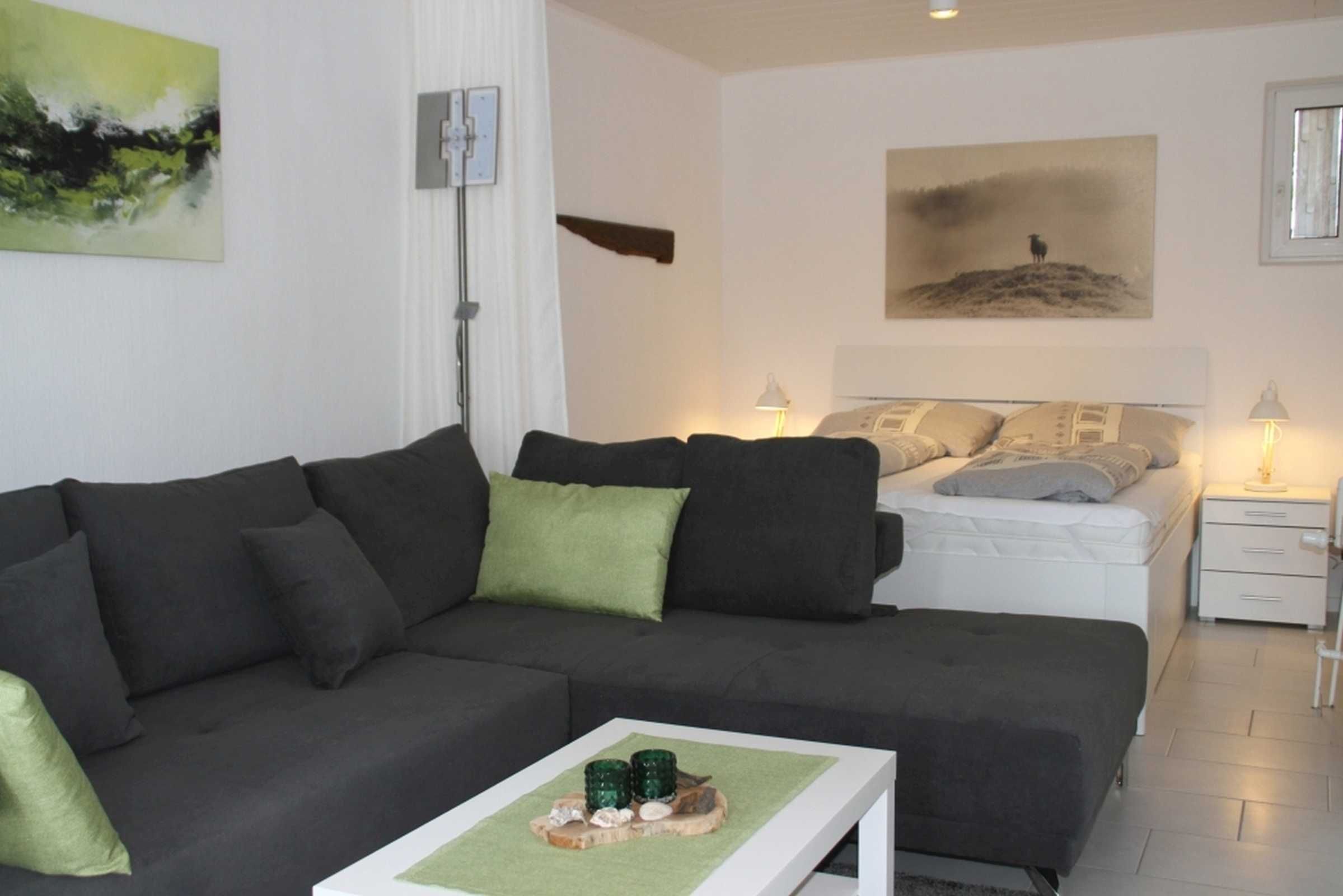 In wenigen Gehminuten erreichen Sie sowohl einen der schönsten Strände an der Nordsee, wie auch den Ortskern von Horumersiel, mit allen Einrichtungen des täglichen Bedarfs. Im geräumige Wohnzimmer mit bodentiefen Fenstern und integriertem Essplatz, stehen Ihnen eine großzügige, elektrisch verstellbare Sitzgarnitur, Flachbildfernseher mit Smart TV, Amazon Fire TV, DVD Spieler mit Filmen und kostenloses WLAN zur Verfügung. In einer gemütlichen Nische, die blickdicht mit einem Vorhang zu schließen ist, befindet sich ein bequemes Doppelbett in Komforthöhe. Vom Wohnzimmer aus betreten Sie auch die sehr weiträumig gestaltete und möblierte, sonnige Südterrasse mit halber Überdachung und Markise. Der Blick und die Atmosphäre laden zum ausgedehnten Frühstück, ausgiebigen Sonnenbad oder romantischen Glas Wein in den Abendstunden ein.