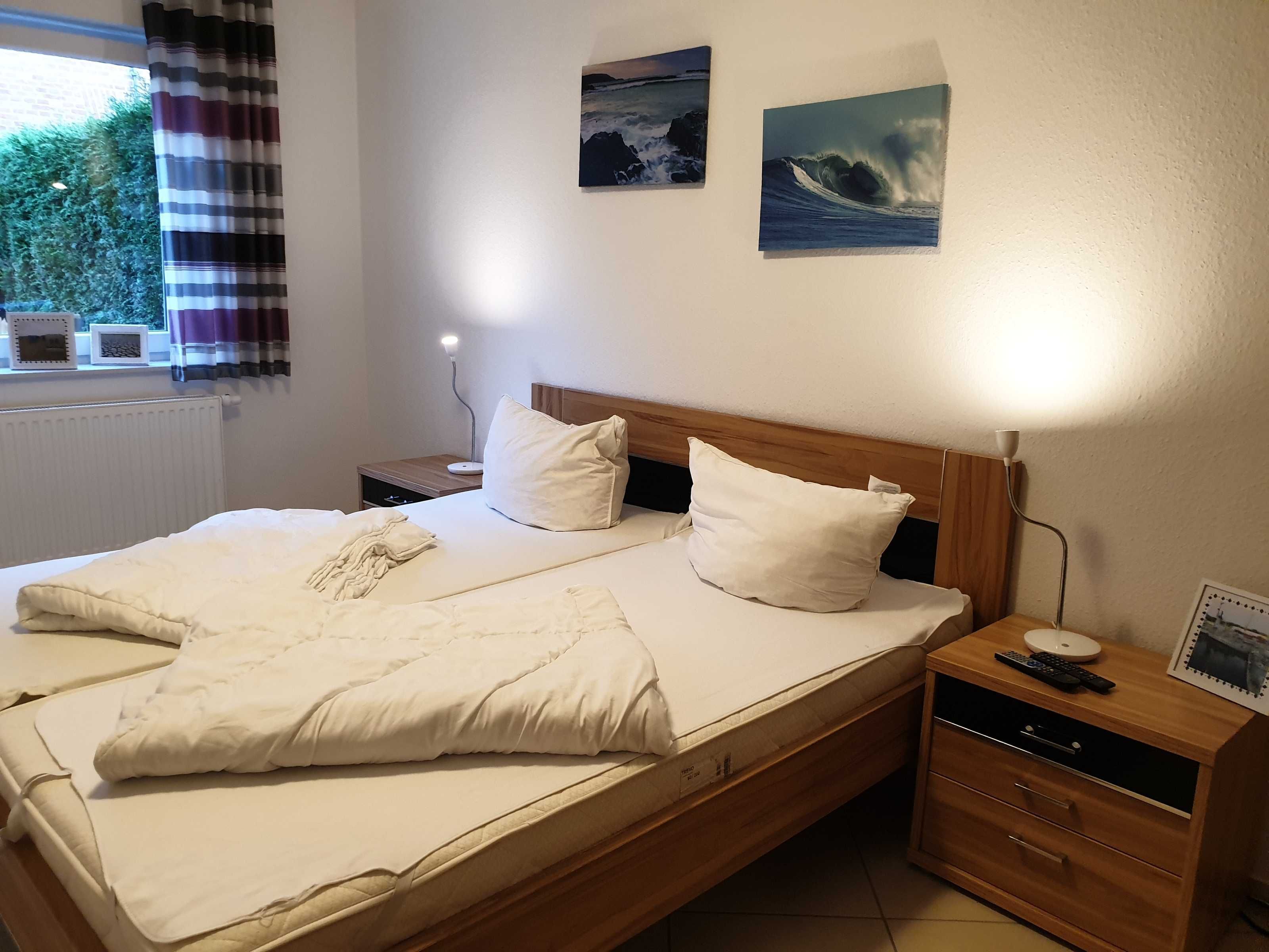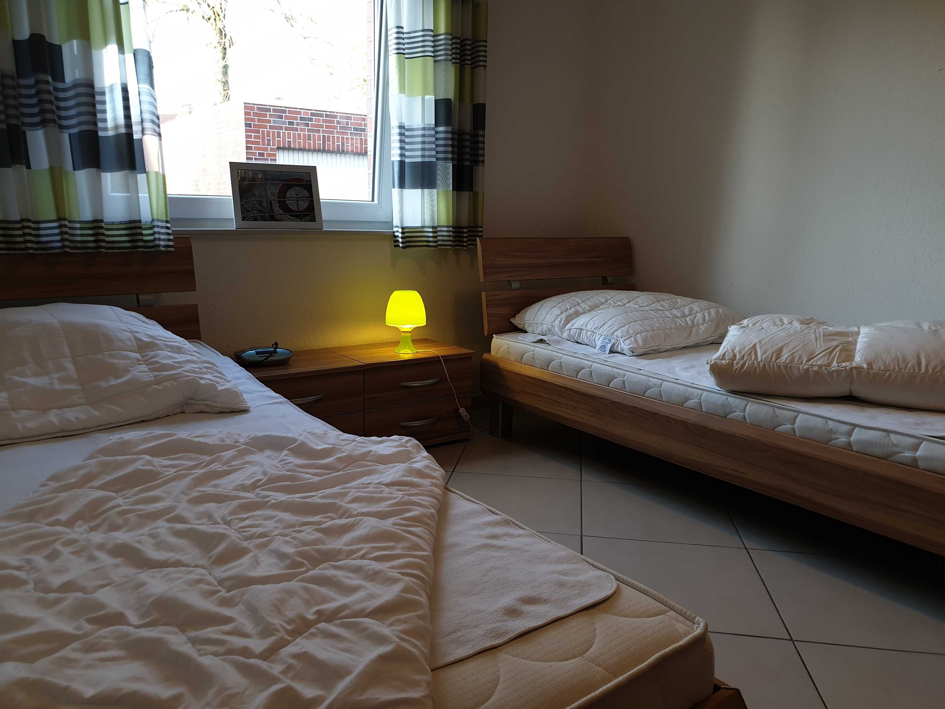 Die Wohnung verfügt über eine geräumige Wohnküche mit TV, Essbereich und allen notwendigen Annehmlichkeiten. Ein Schlafzimmer mit Doppelbett und TV, ein weiteres Zimmer mit zwei Einzelbetten, ein Badezimmer mit Dusche/WC, Flur, Abstellraum sowie ein Kinderreisebett stehen zur Verfügung.