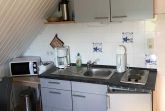Die Ferienwohnung Baltrum verfügt über ein Wohnzimmer mit Schlafcouch und offener Küche sowie einem Schlafzimmer mit einem Doppelbett. Die Wohnung verfügt über ein Badezimmer mit Dusch und WC.