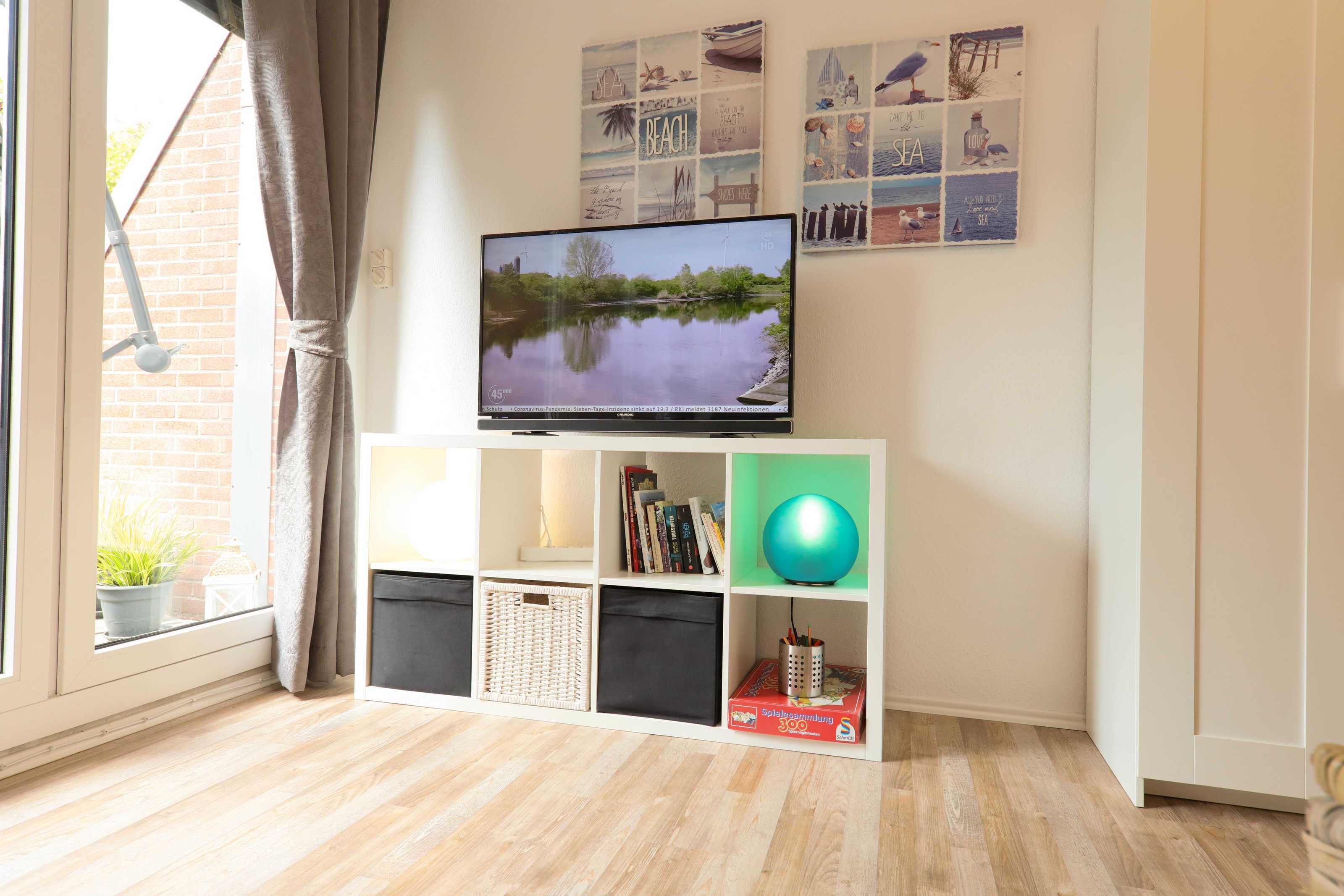 Die ebenerdige Ferienwohnung Strandlust ist 43 m² groß und befindet sich im Erdgeschoss in Sackgassenlage in Friesenhörn, einem Ortsteil von Horumersiel. Es ist mit viel Geschmack und Liebe zum Detail eingerichtet und bietet bis zu vier Personen ausreichend Platz. Die gut ausgestattete Küchenzeile verfügt über einen Backofen mit vier Kochfeldern, einen Geschirrspüler, einen Kühlschrank, Kaffeemaschine, Wasserkocher und Toaster. Ein Essplatz für 4 Personen schließt sich der Küche an. Die Wohnung verfügt über ein separates Schlafzimmer mit Doppelbett. Im Wohnbereich kann das Sofa zu einem weiten Schlafplatz (1,60m Breite) für zwei Personen mit einem leichten Handgriff ausgeklappt werden. Der Wohnbereich verfügt ebenfalls über einen Flachbildfernseher. Das Badezimmer verfügt über eine Dusche und WC sowie über eine Waschmaschine. Ein Terrasse in Süd-Richtung schließt sich dem Appartment an und lädt an sonnigen Tagen zum Frühstück im Freien ein. Der Strand sowie alle Einrichtungen des täglichen Bedarfs können Sie bequem zu Fuß erreichen. Ein eigener Parkplatz befindet sich direkt am Haus. Auch Ihr Vierbeiner ist herzlichst willkommen!