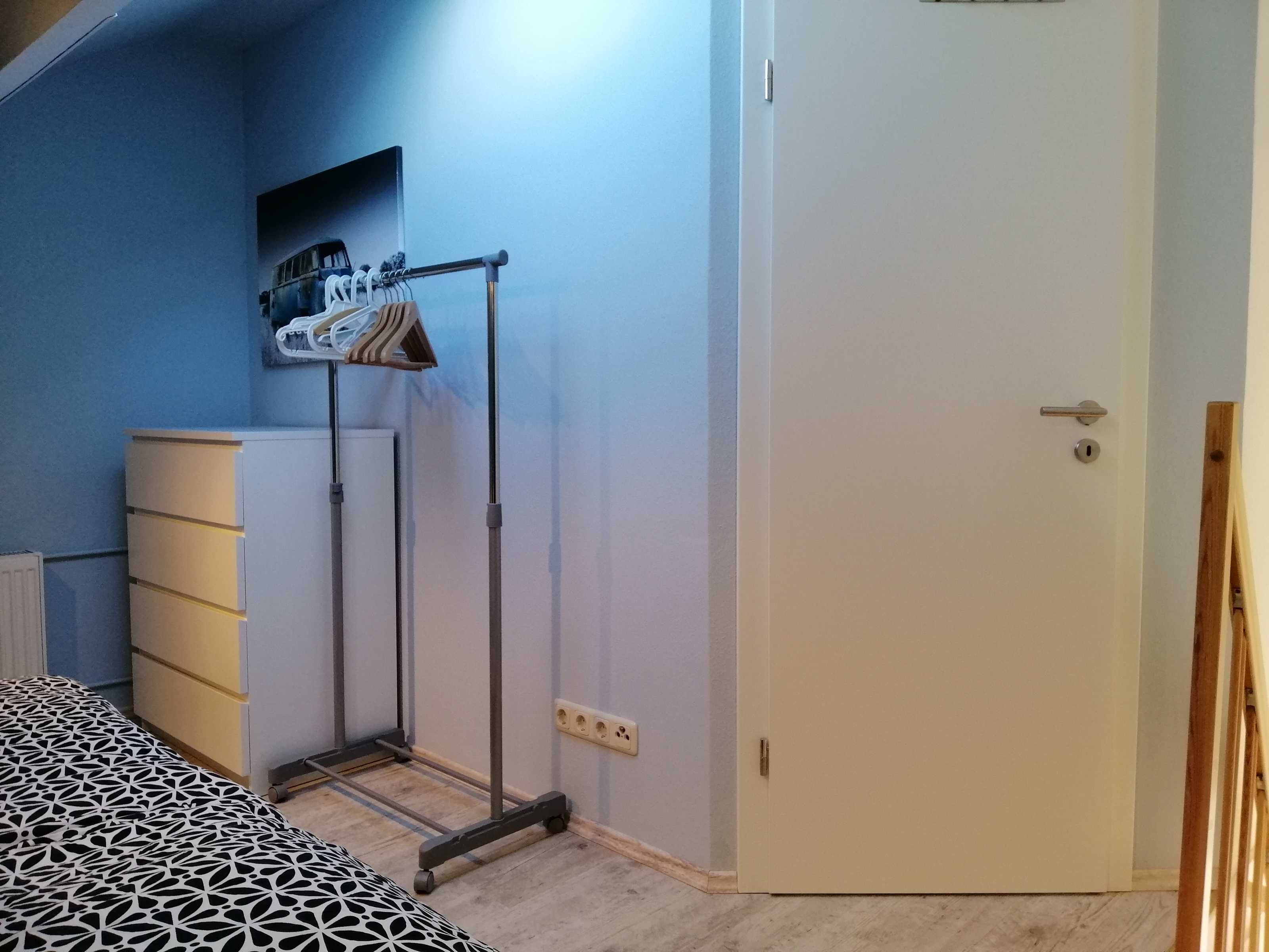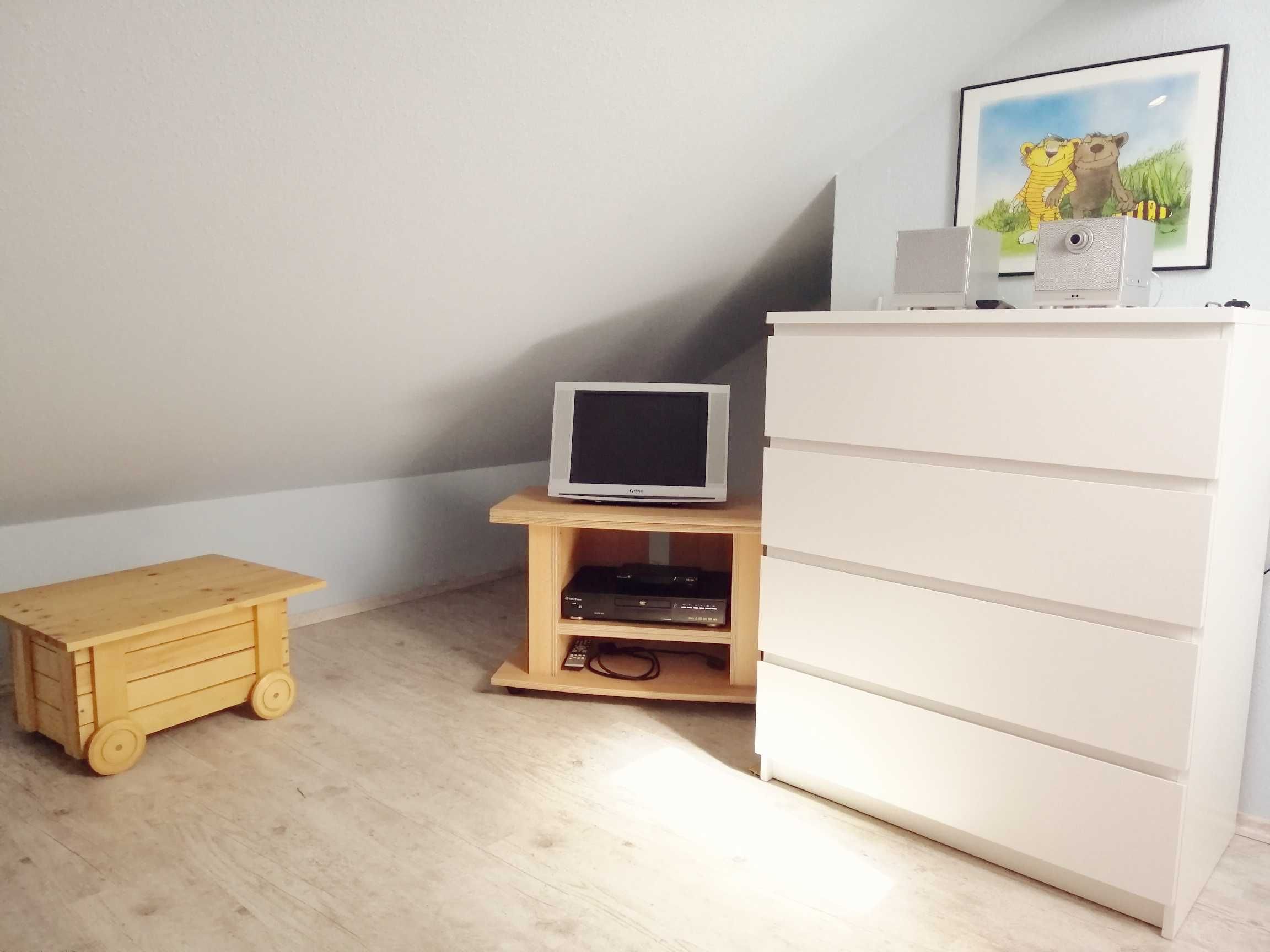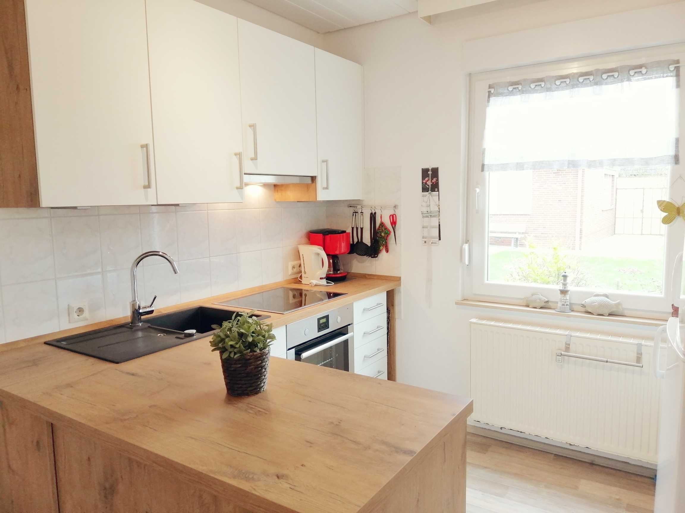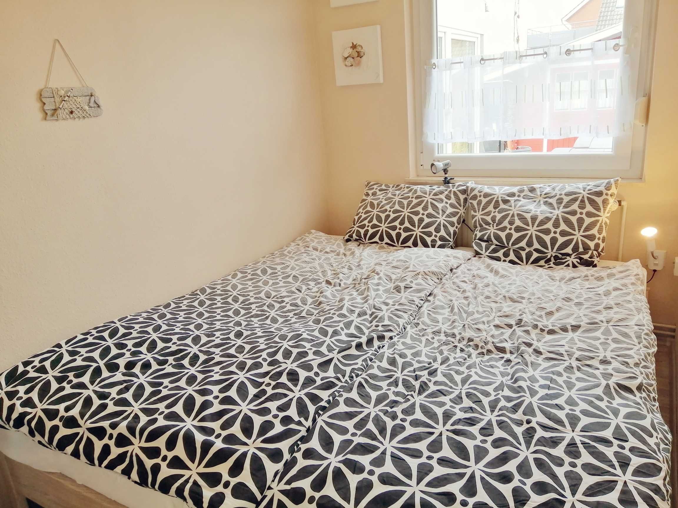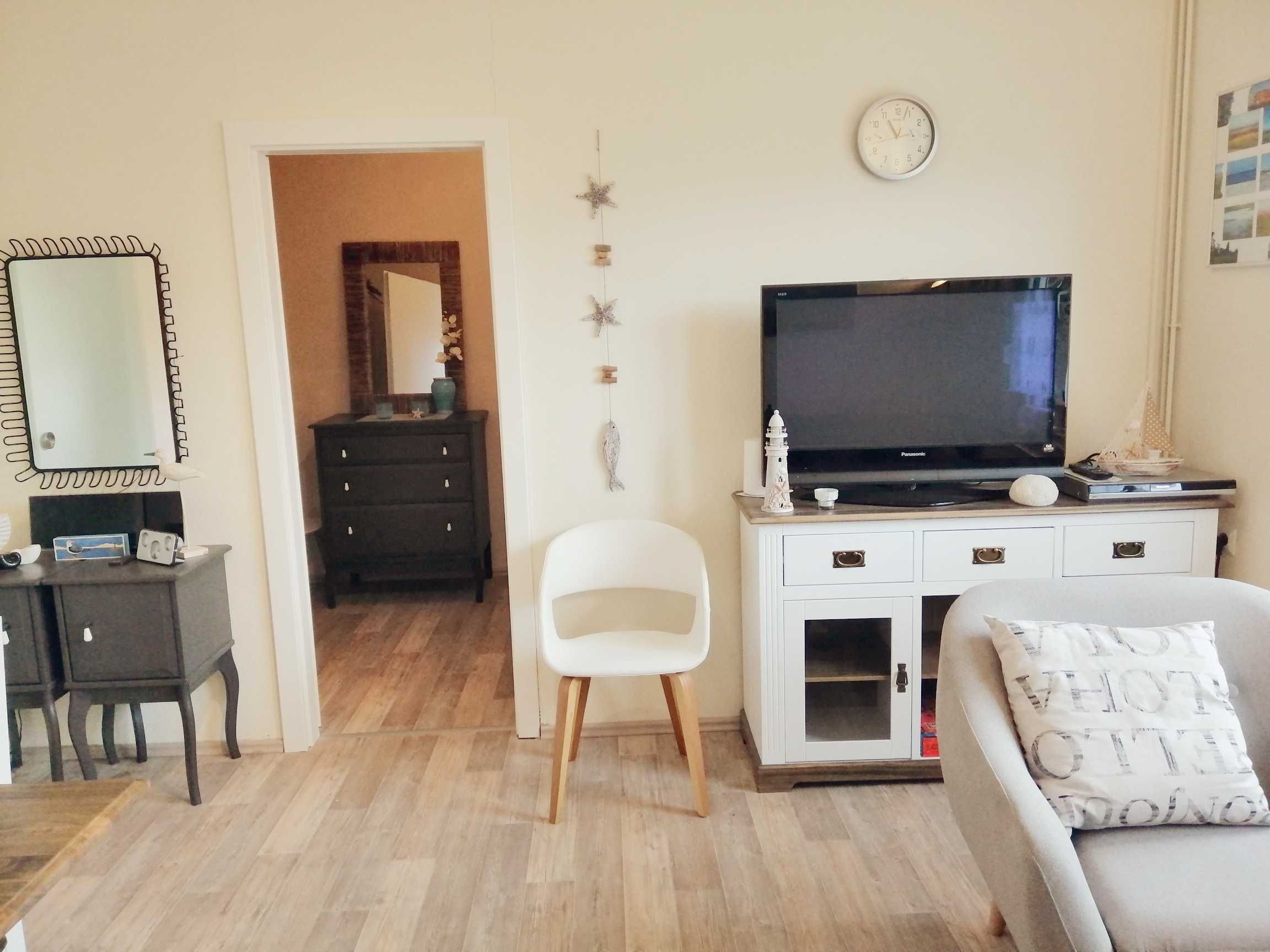 Die gemütliche Ferienwohnung verfügt über 68 m² Wohnfläche und bietet für vier bis fünf Personen ausreichend Platz für einen erholsamen Urlaub. Die separate Küche mit Essplatz ist mit einem Backofen und einem Kochfeld mit vier Herdplatten, einer Geschirrspülmaschine, einem Kühlschrank, einem Gefrierschrank, Mikrowelle, Kaffeemaschine, Wasserkocher, Toaster und Waschmaschine ausgestattet. Das Wohnzimmer verfügt über ein gemütliches Sofa sowie einen Fernseher mit Satellitenempfang. Der Essplatz ist im Wohnzimmer integriert. Dem Wohnzimmer schließt sich ein Schlafzimmer mit Doppelbett an. Über eine Raumspartreppe gelangen Sie in den oberen Stock. Hier finden Sie ein Schlafzimmer (Galerie) mit Doppelbett und ein Kinderzimmer mit Schlafsofa. Die Zimmer sind durch Außenrollos abdunkelbar. Der Wohnung schließt sich ein kleines Stück Garten mit Strandkorb an. Zum Strand sind es nur wenige Gehminuten. Ein Parkplatz ist direkt am Haus.
