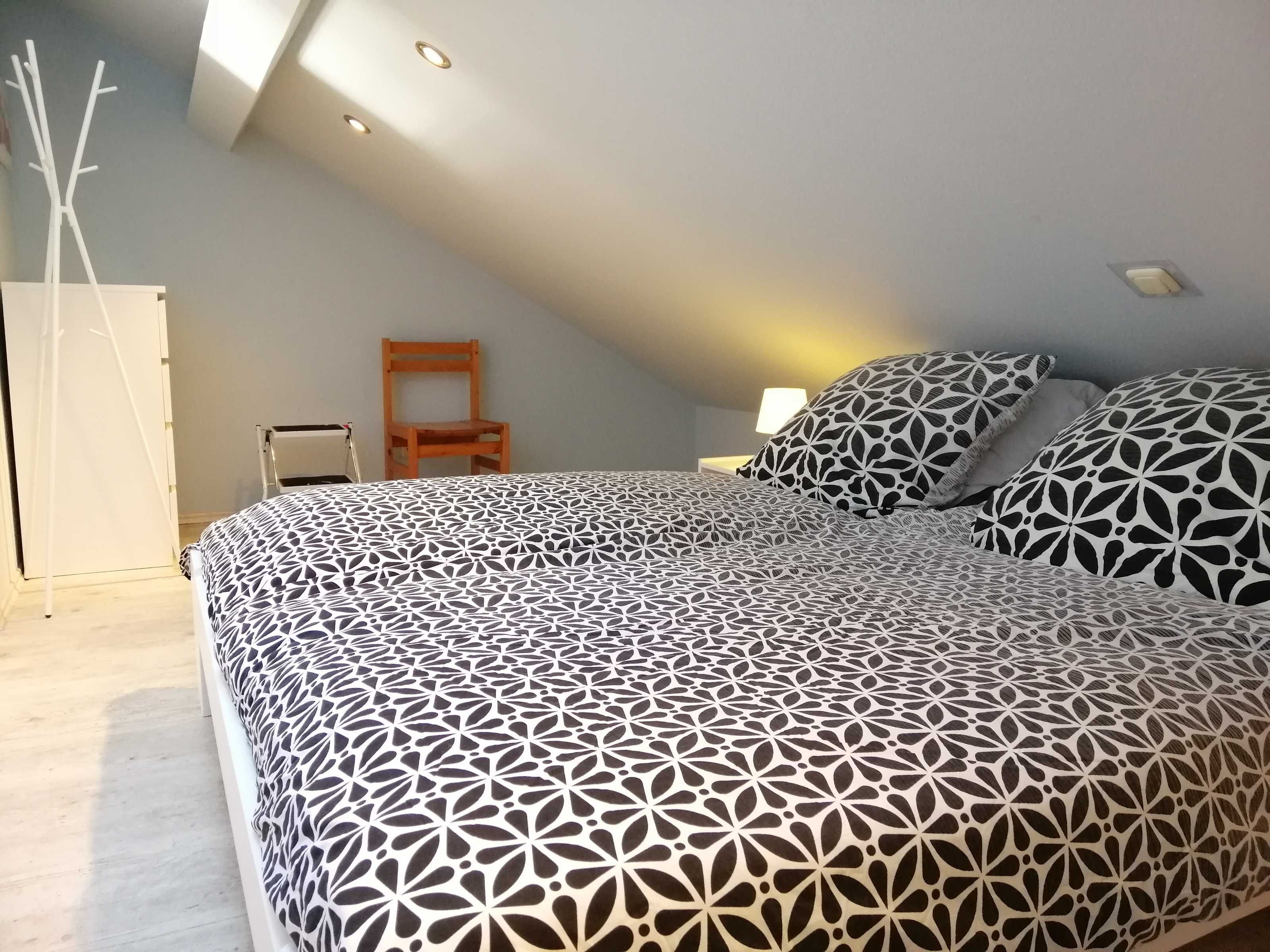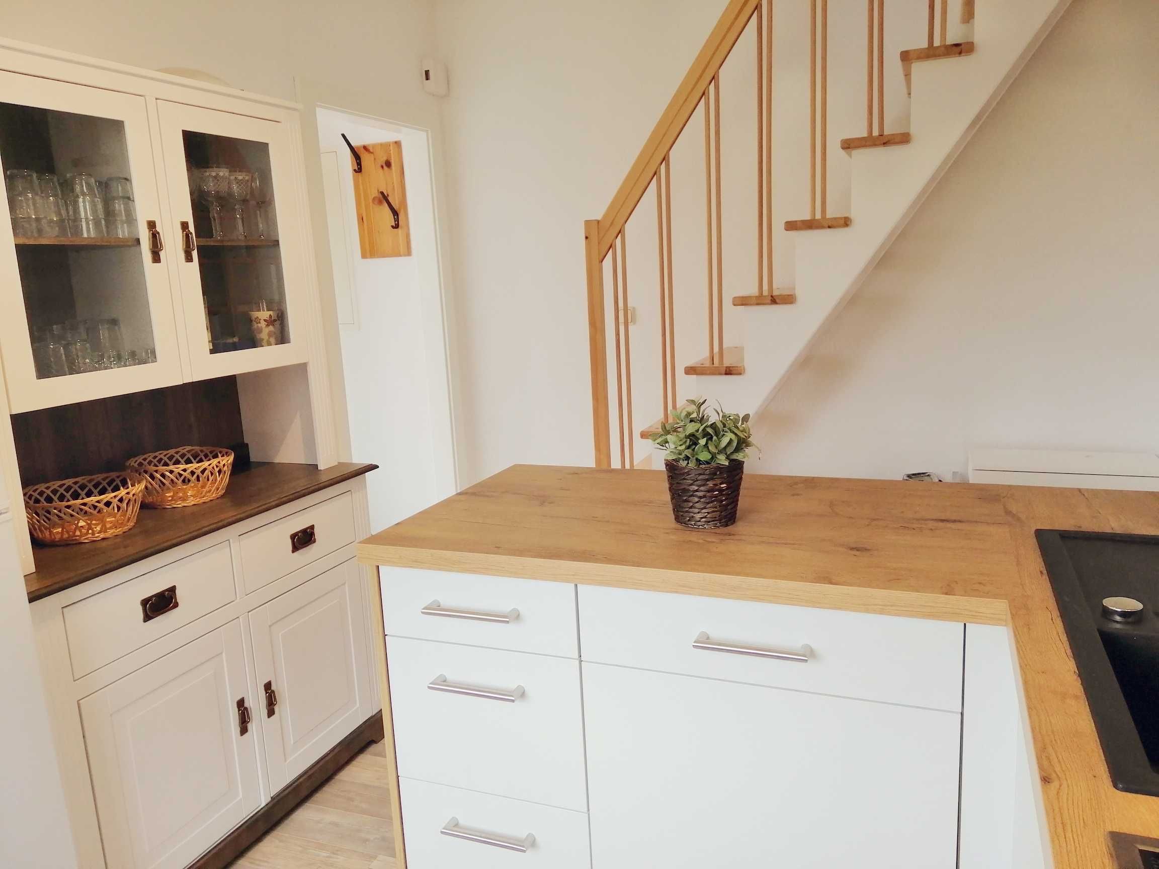 Das Reihenendhaus verfügt im Erdgeschoß über ein Schlafzimmer mit französischen Bett, 1 Galerie - Schlafzimmer in der ersten Etage mit Doppelbett, das über eine Raumspartreppe zu erreichen ist, sowie  ein Schlafzimmer mit Schlafsofa. Das Wohnzimmer verfügt über einen Essplatz. Die Küche schließt sich dem Wohnzimmer an.