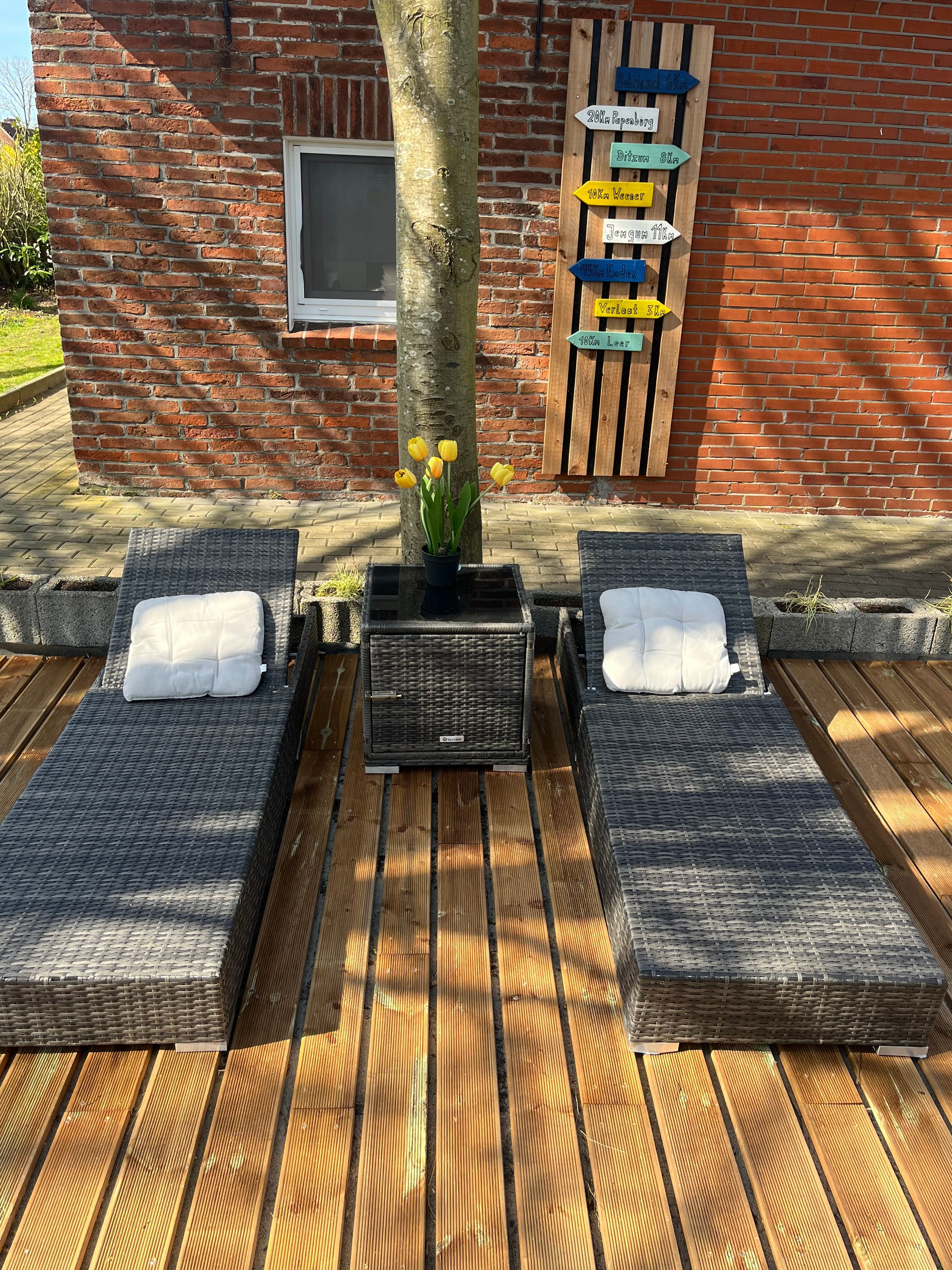 Unser Ferienhaus hat ca. 150 qm Wohnfläche, verteilt auf 2 Etagen. Im Erdgeschoss befinden sich 1 Schlafzimmer mit einem Boxspringbett (1,60 x 2 m) mit TV, 2 Badezimmer mit Duschen, Küche und Wohnstube mit einem Wandelektro-Kamin und einen Essbereich. Über eine breite Treppe kommt man ins Obergeschoss, wo sich 2 weitere Schlafzimmer mit Doppelbetten befinden. Diese Zimmer sind ebenso mit Fernsehgeräten ausgestattet. Zusätzlich können, auf Anfrage, in den Zimmern die Schlafmöglichkeiten durch Kinder/Erwachsenen Reisebetten erhöht werden. Ab sofort bieten wir unseren Gästen zusätzlich eine Infrarotsauna anbieten, die vor Ort dazu gebucht werden kann. Handtücher und Bettwäsche für das Ferienhaus sind im Preis enthalten. Das Haus befindet sich auf einem umzäunten Grundstück im Ortsteil Dollart. Auf ca. 200 qm Gartenfläche, finden Sie eine mit Gartenmöbeln ausgestattete Terrasse, Grillplatz und eine Spielecke für Kinder. Neu ist unsere großzügige Holzterrasse mit gemütlichen Loungemöbeln. Da wir ein Nichtraucherhaus sind, haben wir im Außenbereich eine überdachte Raucherecke für Sie eingerichtet. Kinder und Hunde sind gerne gesehen. Für unsere kleinen Gäste können wir Reisebetten, Hochstühle, Wickelauflagen und Türgitter kostenlos mit anbieten. Bei Bedarf, bitte bei der Buchung mit angeben. Bitte beachten Sie bei der Buchung auch die Preisvereinbarungen in den Altersgruppen für Kinder. Für unsere 4-beinigen Gäste liegen, Näpfe, Decken und Handtücher bereit. Bitte beachten Sie, dass Hunde kostenpflichtig sind und mit angegeben werden müssen.