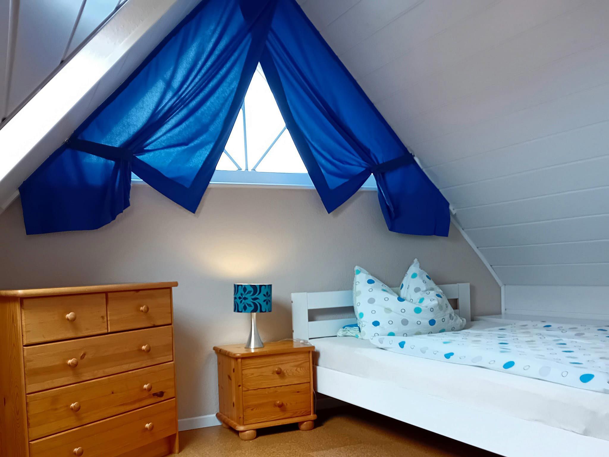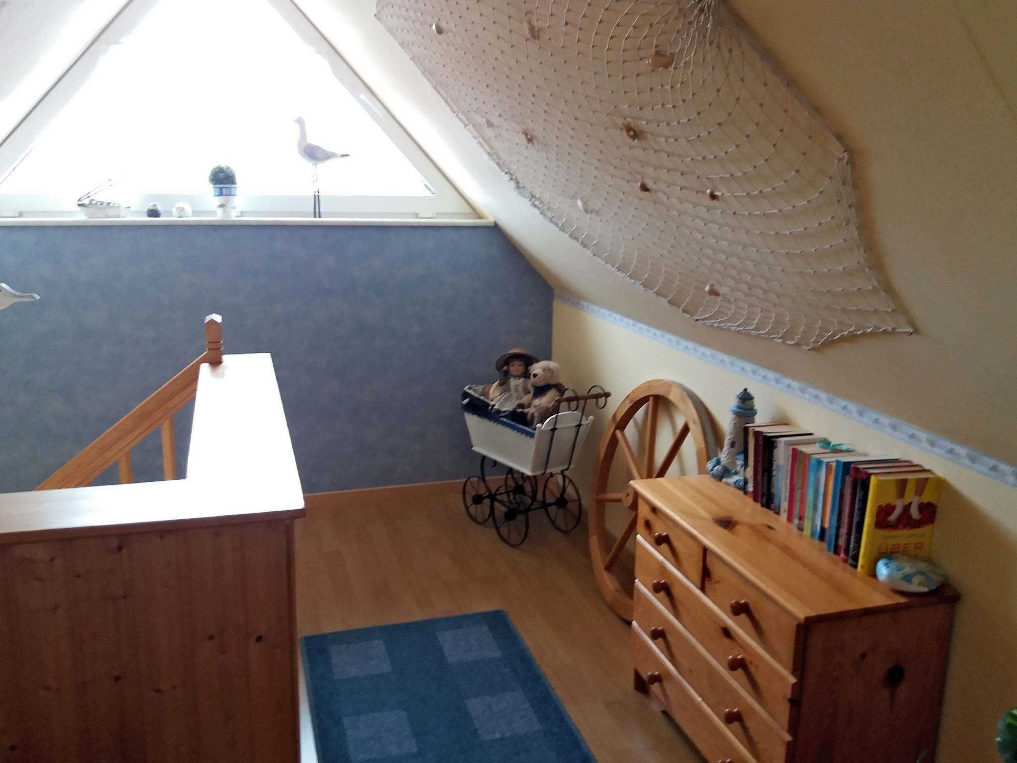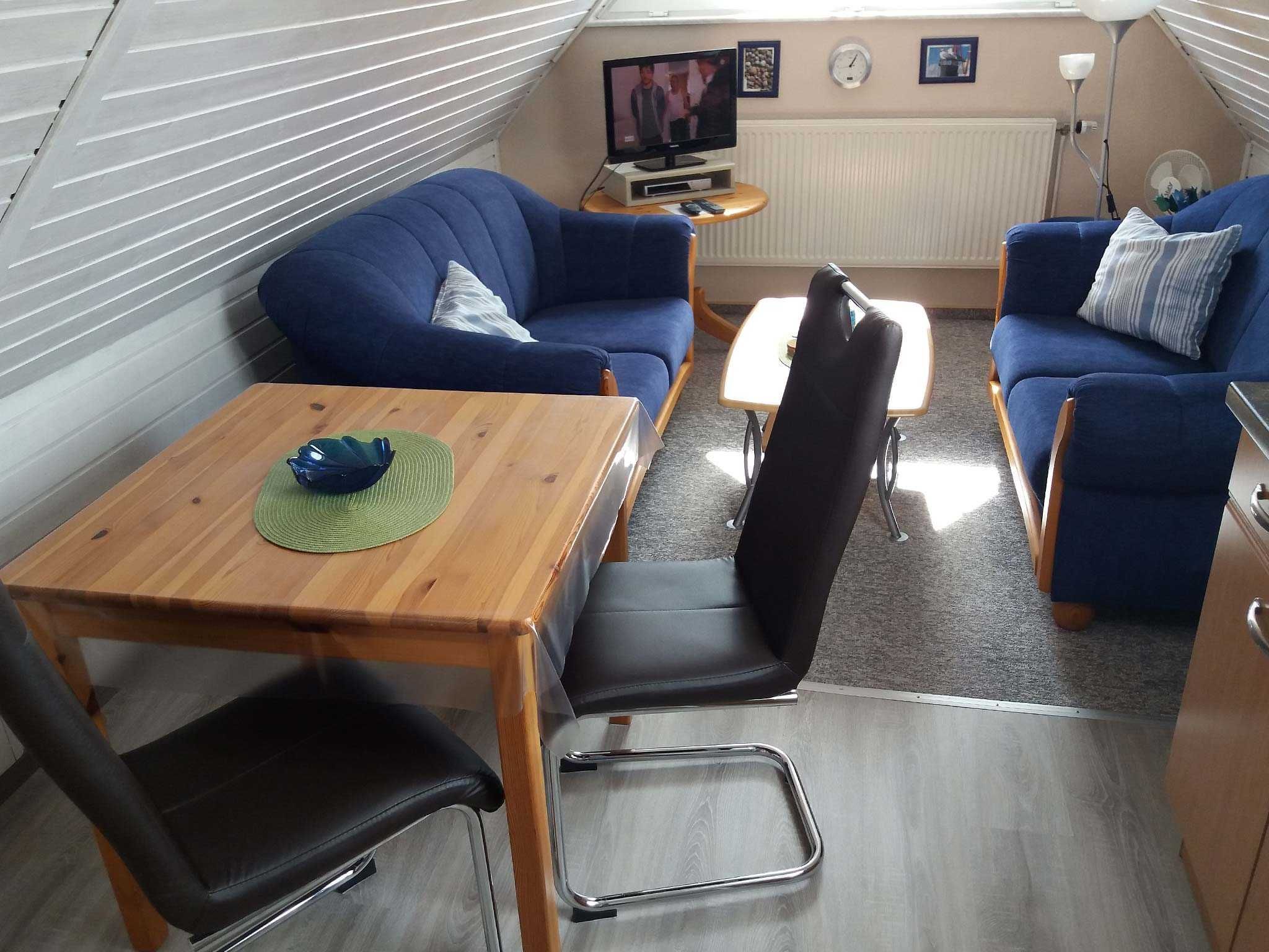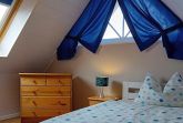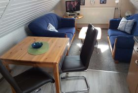 Gemütliche Ferienwohnung für 1 Person im Dachgeschoss. Wohnzimmer mit Sat-TV und kleiner Küchenzeile mit Essplatz. Ein kuscheliges Schlafzimmer mit großem Bett. Helles Duschbad mit Dachfenster und WC.