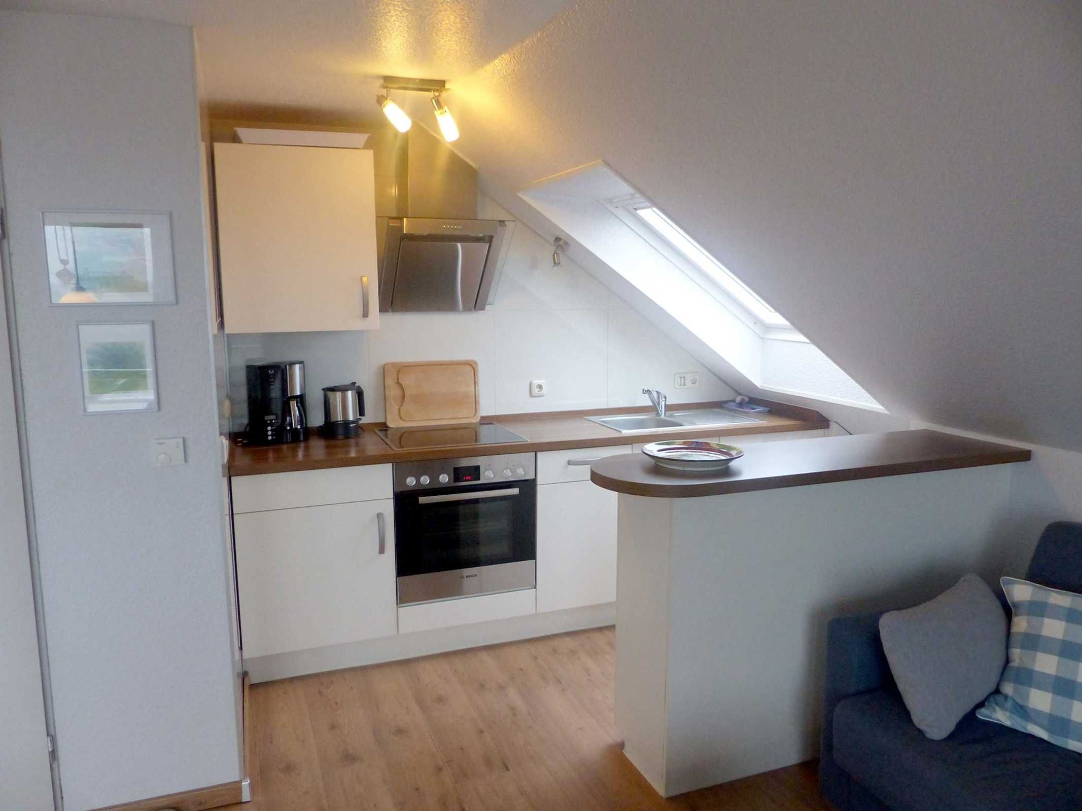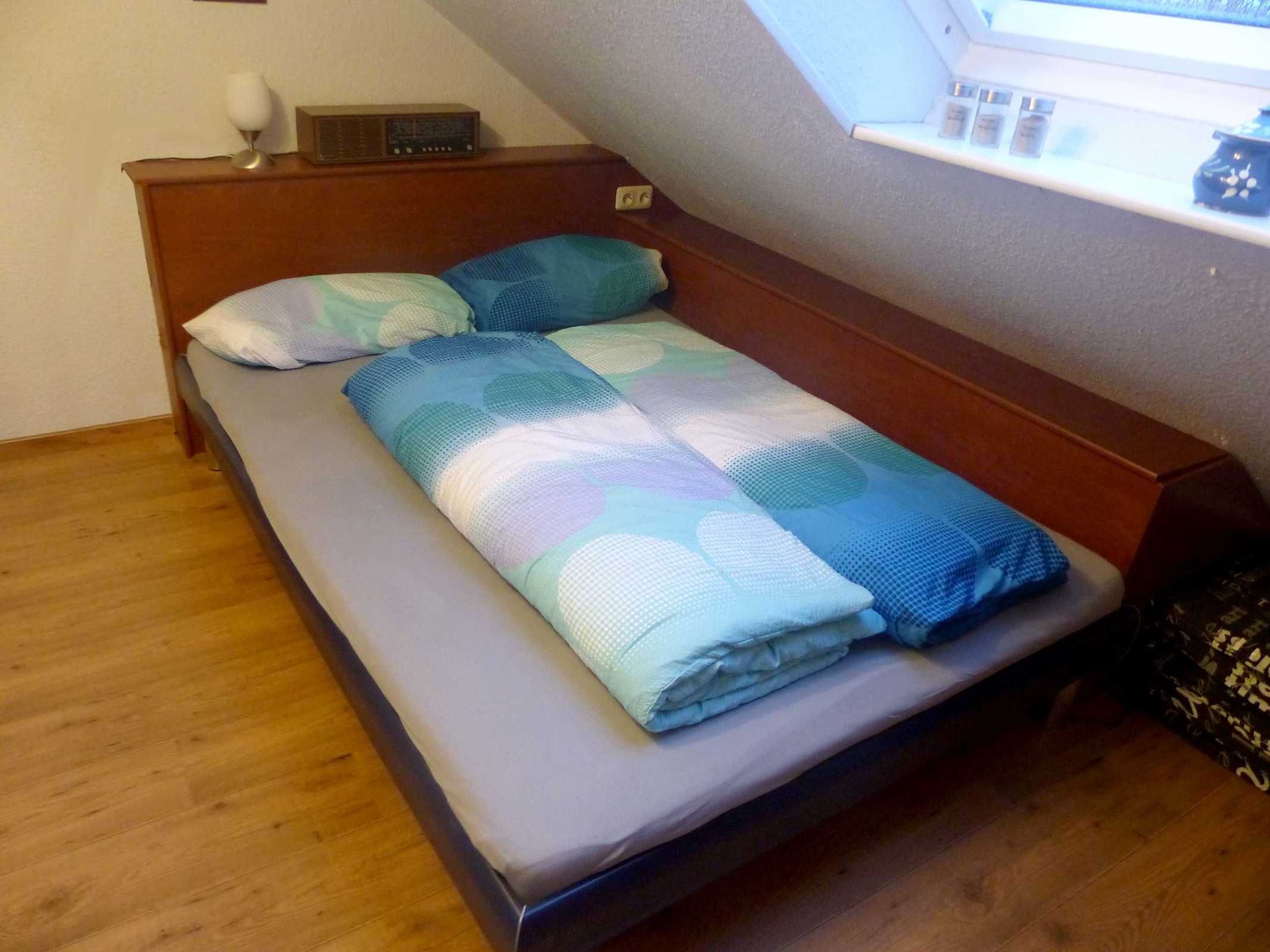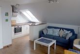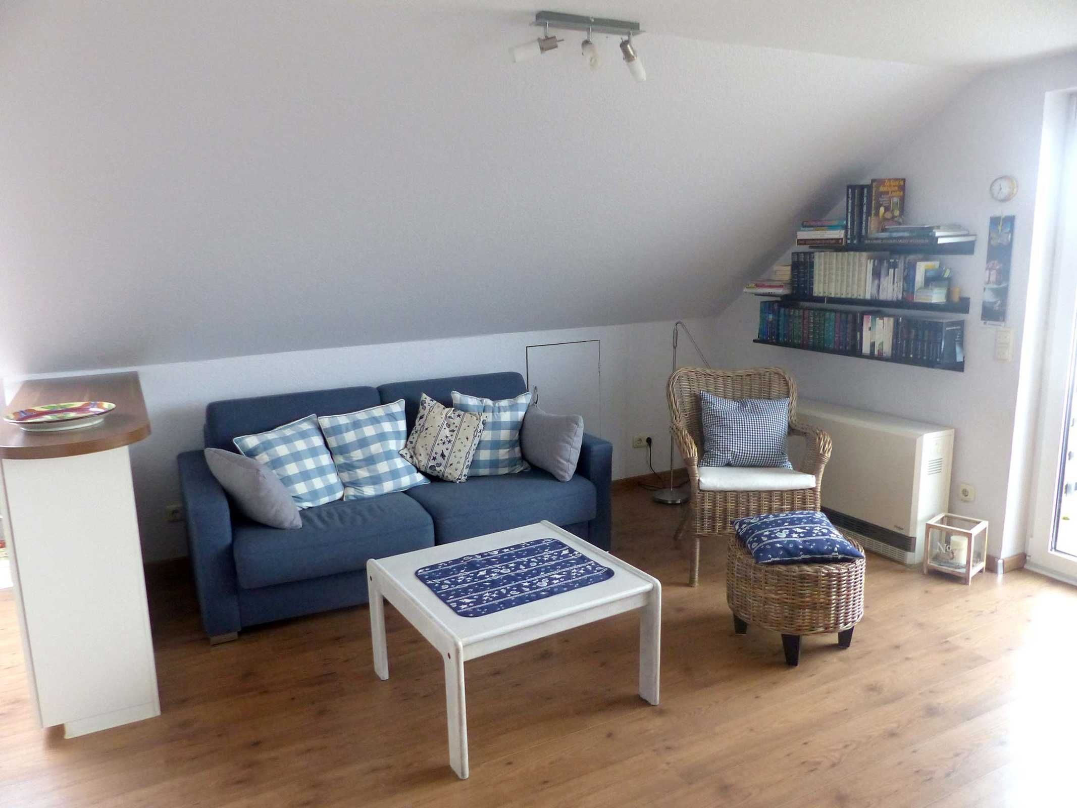 Ruhig gelegene Ferienwohnung für 2 Personen im Dachgeschoss. Helles, modern eingerichtetes Wohnzimmer mit komfortabler Schlafcouch und Balkon mit herrlichem Blick über die Felder. Die zum Wohnraum offene Küche ist komplett ausgestattet, inkl. Geschirrspüler. Sep. Schlafzimmer mit Doppelbett, inkl. Bettwäsche. Dusche (ebenerdig) und WC inkl. Haarfön. WLAN, PKW-Stellplatz in der Nähe. Nichtraucherwohnung! Keine Haustiere.