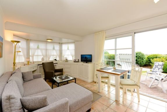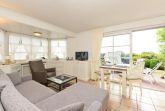 Ein moderner Einrichtungsstiel in hellen Farben erwartet Sie. Wohnzimmer mit bequemer Sitzgarnitur und gemütlichem Esstisch an der Terrasse. Flachbildschirm und Radio sowie kostenloser Internet-Zugang über WLAN.