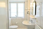 Tageslicht-Badezimmer mit Dusche, WC, Waschtisch.