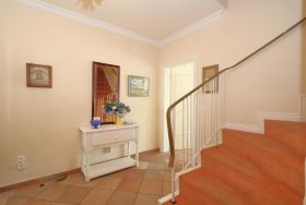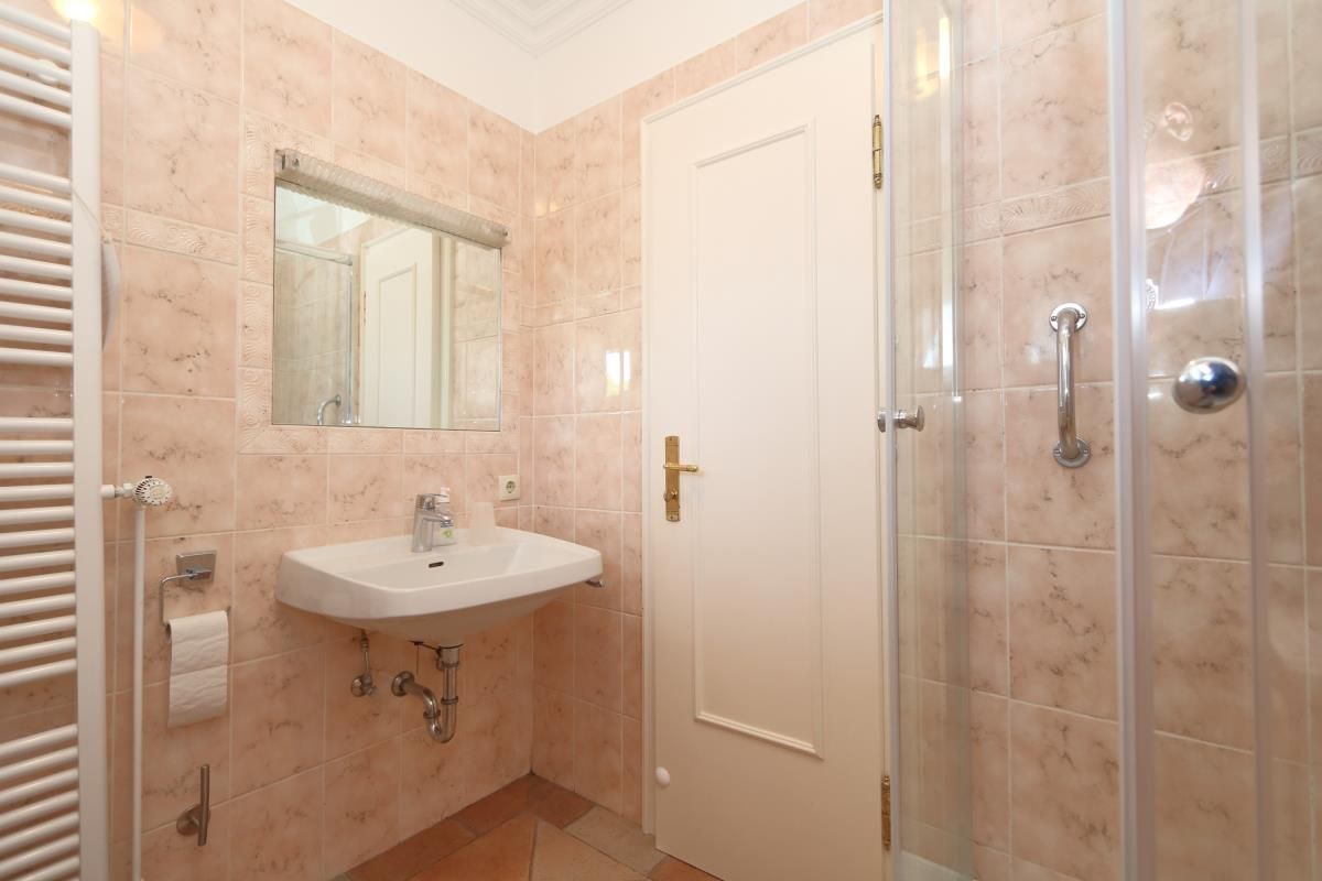 Im Obergeschoss sind drei Schlafzimmer und ein Bad. Ein Schlafzimmer hat zwei getrennte Einzelbetten, ein anderes Schlafzimmer ist mit einem eingebauten Einzelbett ausgestattet und ein weiteres Schlafzimmer mit Doppelbett hat eine eigenen Waschgelegenheit.