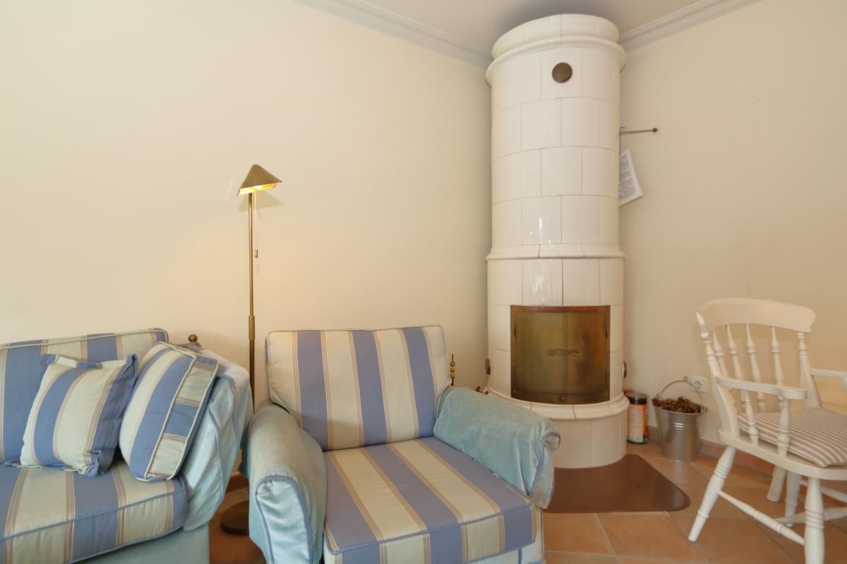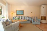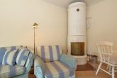 Erdgeschoss: Großes Wohnzimmer (ca. 30 m²) mit Essplatz und Kachelofen. Kabel-TV, CD, Telefon und W-LAN-Anschluss. Separate Küche mit u. a. Spülmaschine, Backofen, Mikrowelle. Duschbad mit Gäste-WC.