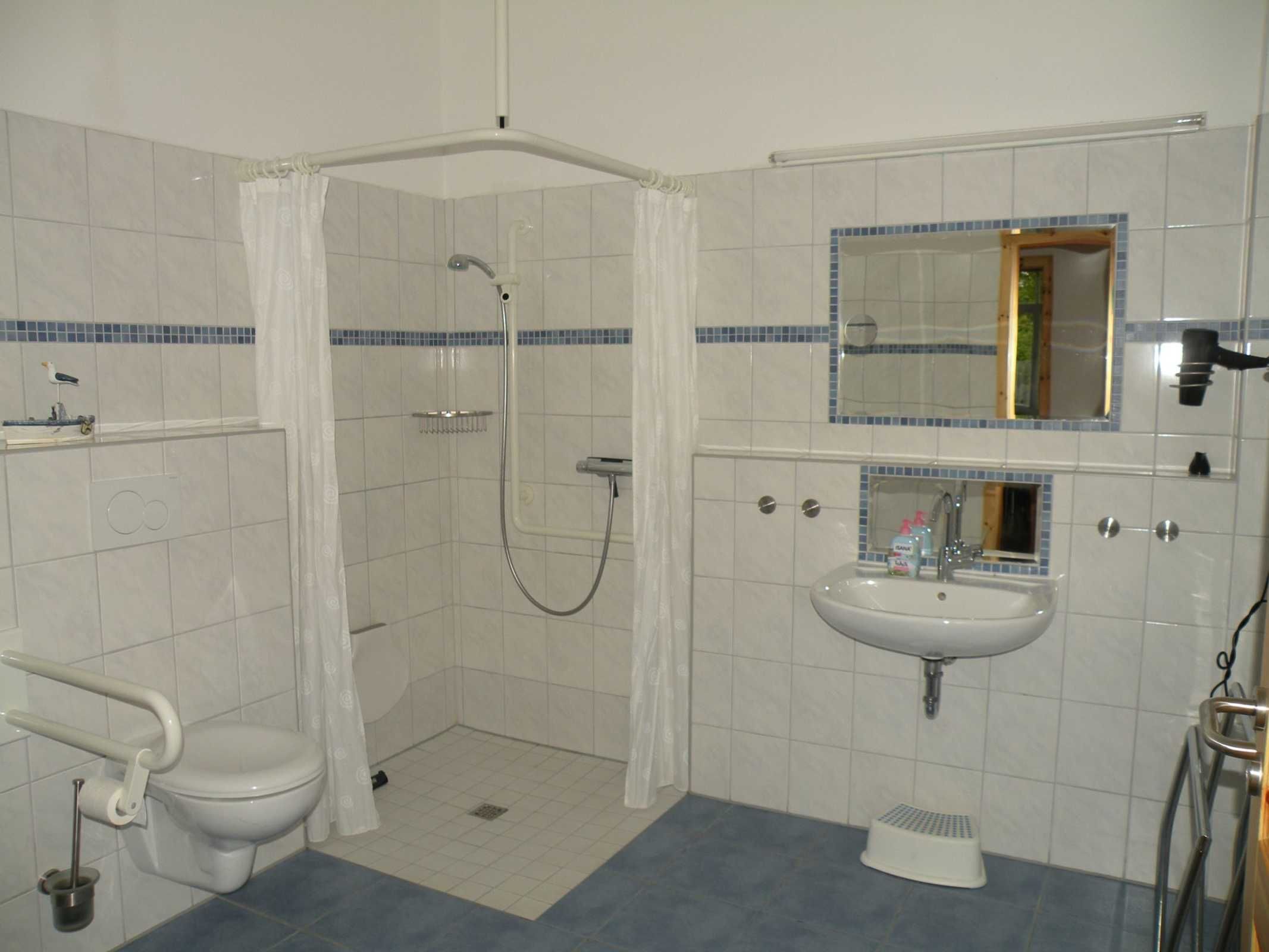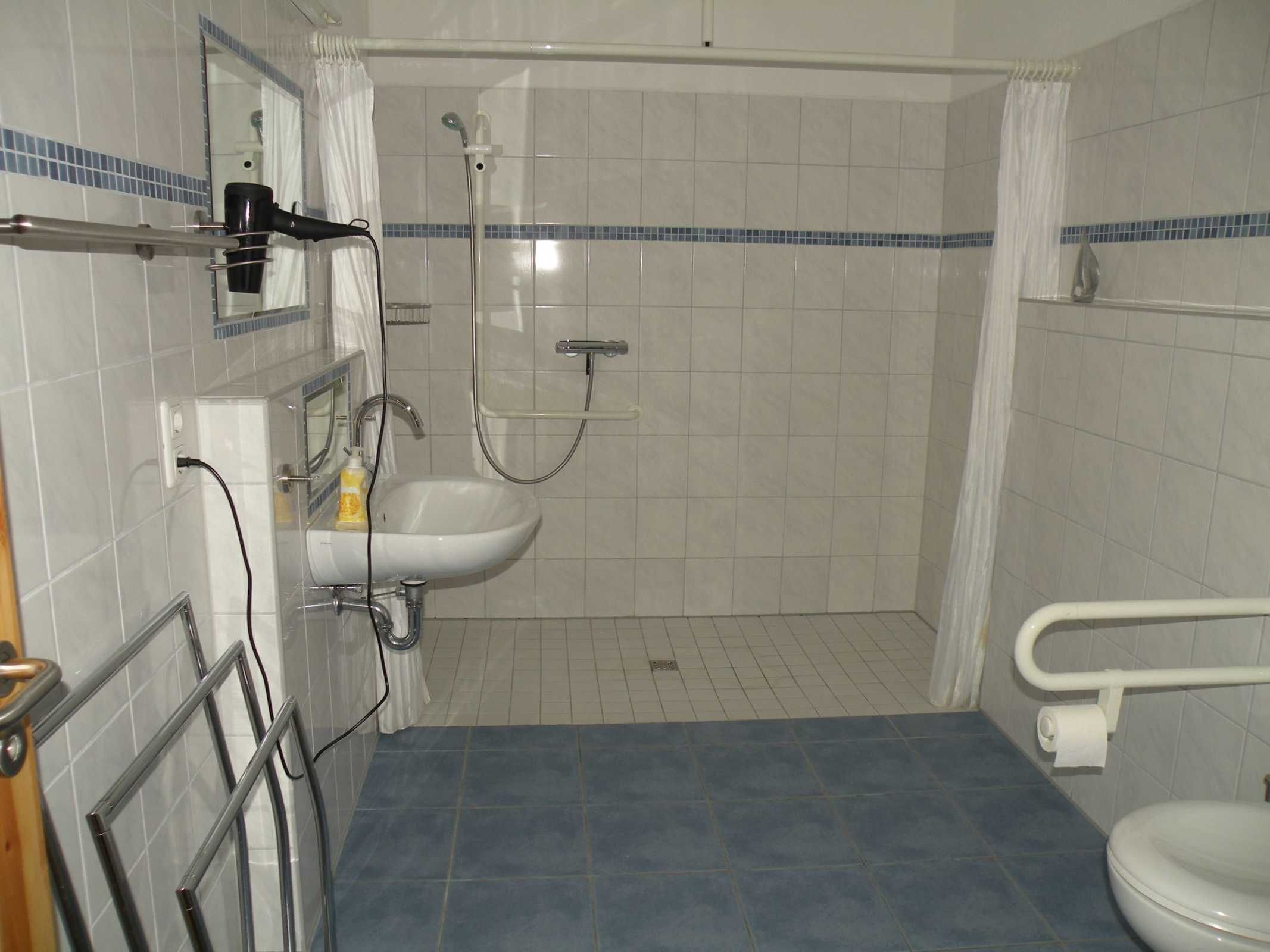3 geräumige, rollstuhlgerechte Duschbäder mit befahrbarer Dusche,