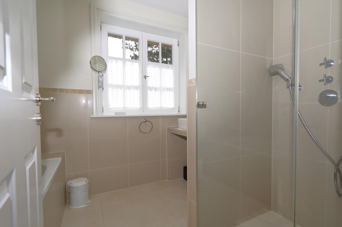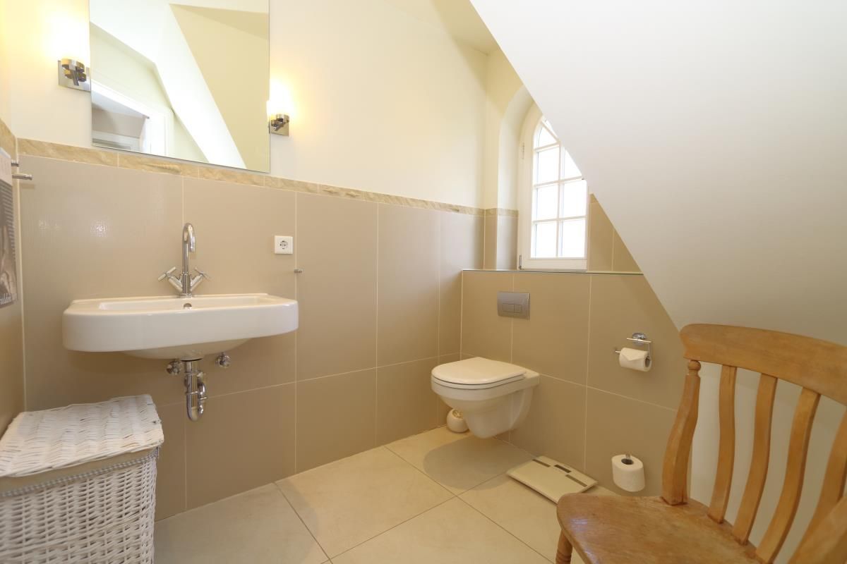 WC, Waschbecken, Fußbodenheizung, Dusche (bodengleich) Ausreichend Handtücher und Vorleger.