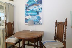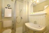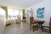 Im Wohnzimmer befinden sich das Doppelschrankbett, 2 Relax-Sessel, und der Essplatz vor dem Ostbalkon. Die neue Küchenzeile mit Spülmaschune befindet sich ebenfalls im Wohnzimmer. Das innenliegende Bad hat eine Dusche.