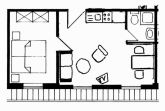 Raumaufteilung: Wohnraum mit Küche . Schlafzimmer, Duschbad.