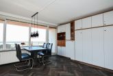 Wohn-/Schlafzimmer mit TV SAT/Kabel, W'Lan, Sofa, Schrankbetten für 2 Personen, Eßtisch mit Aussicht und Zugang zum Balkon mit Meerblick.
