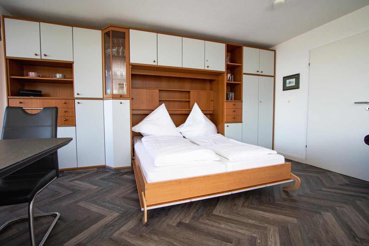 Das Appartement hat im Wohnzimmer in einer Schrankwand zwei einzeln ausklappbare Schrankbetten (Liegefläche jeweils 75x200cm). Eine Couchgarnitur und ein Essplatz runden die Einrichtung ab. An das Wohnzimmer schließen sich zwei Balkone an. Vom Westbalkon hat man einen freinen Blick auf das Meer. Der Südbalkon gestattet auch einen Blick auf das Meer und einen interessanten Blick auf die Fußgängerzone Friedrichstaße. In der Diele ist die Küchenzeile mit Geschirrspüler und Mikrowelle untergebracht. Das Schlafzimmer hat zwei getrennt stehende Einzelbetten (90x200). Im Duschbad gibt es ein Fenster.