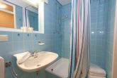 WC, Dusche, Waschbecken, Spiegel und ausreichend Handtücher und Vorleger.
