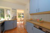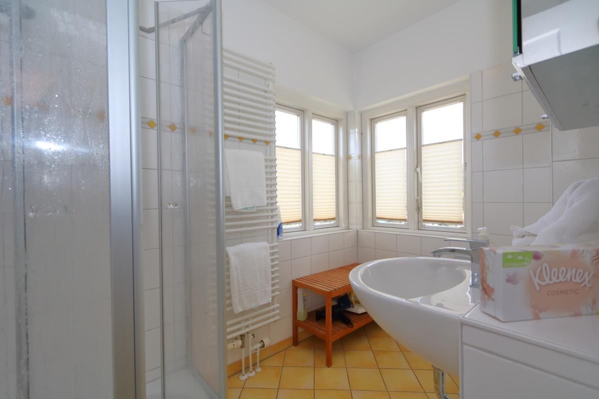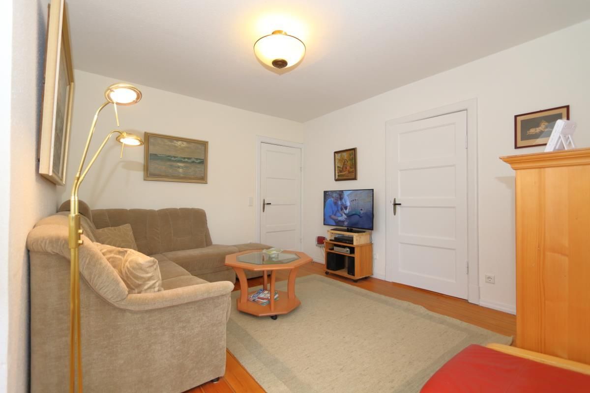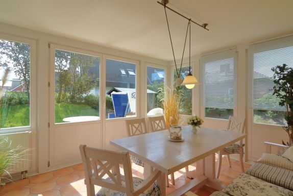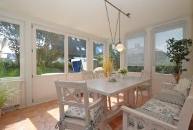 Im Erdgeschoss ist das Wohnzimmer mit der gemütlichen Sitzgarnitur und in einem Erker ein Leseplatz mit Sessel. Das Schlafzimmer hat ein Doppelbett und ein eigenes Waschbecken. Das Duschbad ist mit einem Fenster versehen. Über die Küche mit Spülmaschine und gelangt man in den angebauten Wintergarten. Hier befindet sich der Essplatz.