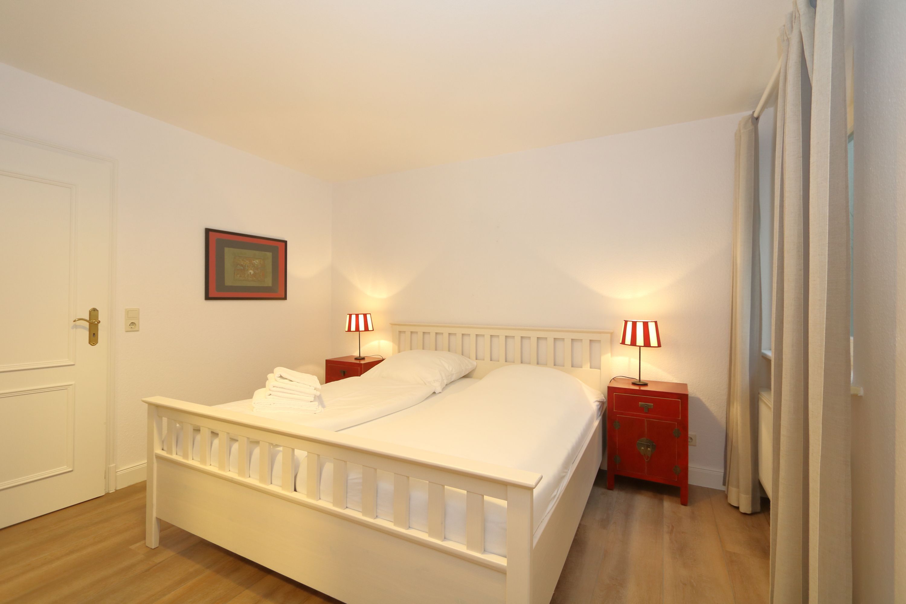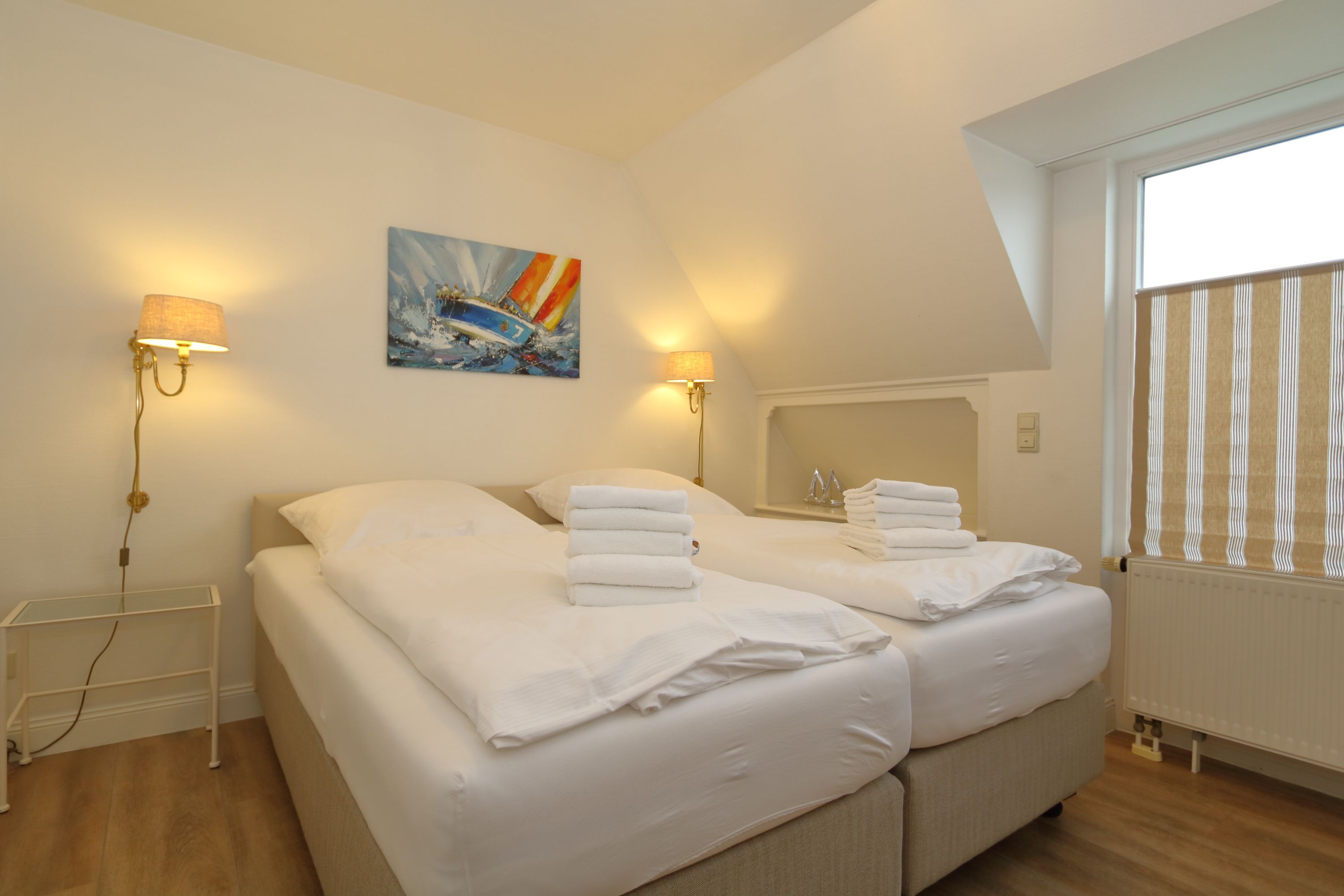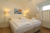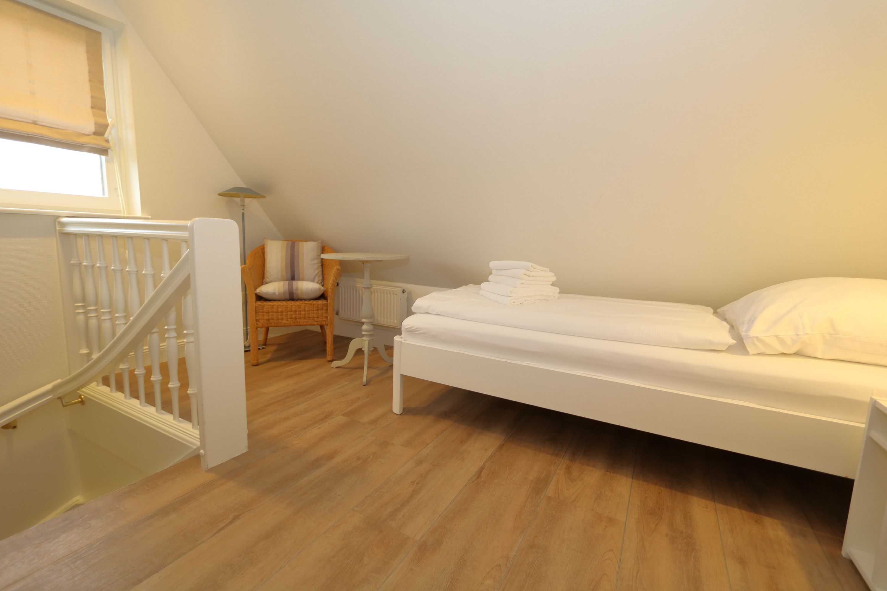Weiterhin gibt es im Haus zwei Schlafzimmer mit Doppelbetten und ein Schlafzimmer mit einem Einzelbett, welches zum Treppenhaus offen ist.