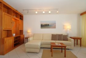 Die traditionell eingerichtete Ferienwohnung ist vielseitig ausgestattet und verfügt über eine Küche, ein Badezimmer mit Duschkabine und einem praktischen Schlaf-und Wohnbereich. Zusätzlich besitzt sie einen Westbalkon, der Ihnen ermöglicht, den Strand und das Meer zu sehen. Sitzmöglichkeiten und eine Liege sind auf dem Balkon ebenfalls gegeben.