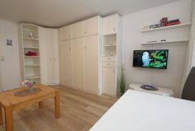 Das Appartement mit Westbalkon und Meerblick über das Flachdach befindet sich in der 3. Etage eines gepflegten Appartementhauses im Kurzentrum, direkt am Hauptstrand. Das Haus liegt zentral in Westerland, zwischen den beiden großen Fußgängerzonen.