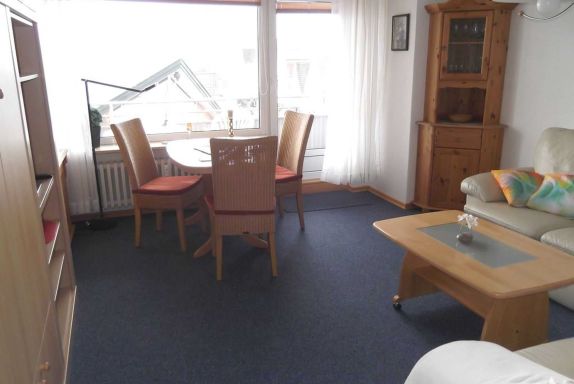 Die helle Wohnung liegt im dritten Stock und ist mit dem Aufzug erreichbar. Durch das große Panoramafenster im Wohnraum hat man einen wundervollen, direkten Blick auf die Halligen und den Sandwall. Das Appartement verfügt über ein separates Schlafzimmer mit Doppelbett, einen gemütlichen Wohn-Schlafraum, einer gut ausgestatteten Küche und einem Duschbad.