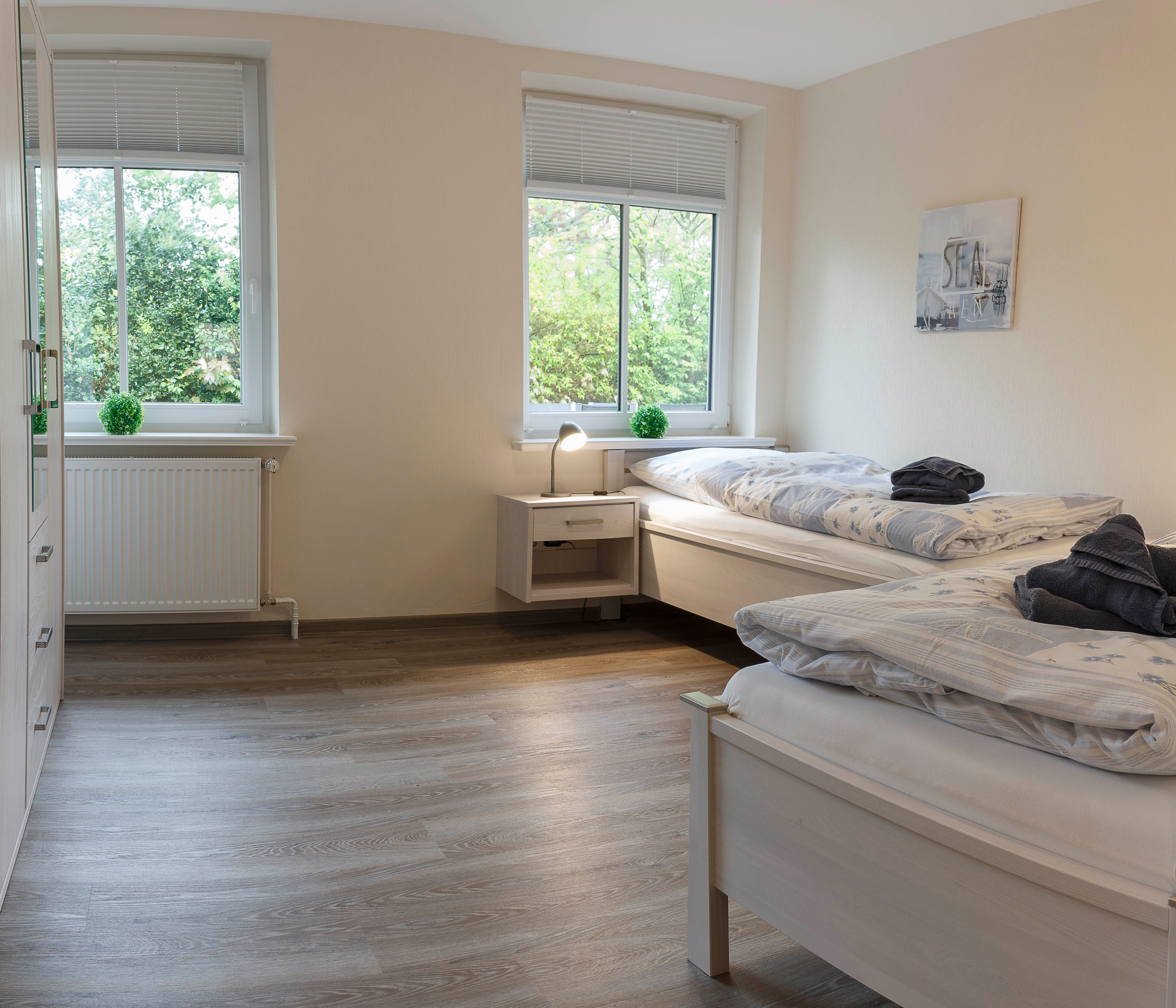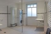 Diese moderne, rollstuhlgerechte Ferienwohnung bietet Platz für 2 bis 4 Personen und verfügt über einen separaten Eingang. Eine Rampe zur Eingangstür ist vorhanden. Die 100m² große Erdgeschosswohnung liegt in der Nähe des Südstrands. Dieser ist nur 400m entfernt. Die Wohnung verfügt über ein großes Wohnzimmer mit integrierter Küche und zwei Schlafzimmern. Der Herd ist mit dem Rollstuhl unterfahrbar. Das schöne Bad ist mit einer ebenerdigen Dusche der Größe 1,5m x 1,5m ausgestattet. Die Toilettenhöhe misst 48cm und ist mit einer Halterung versehen. Die Türen sind 100 cm breit.