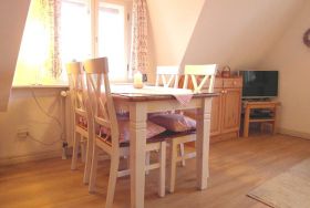 Die schöne, gemütliche Ferienwohnung unter Reet befindet sich in einer Ruhigen Nebenstraße im 1.OG.