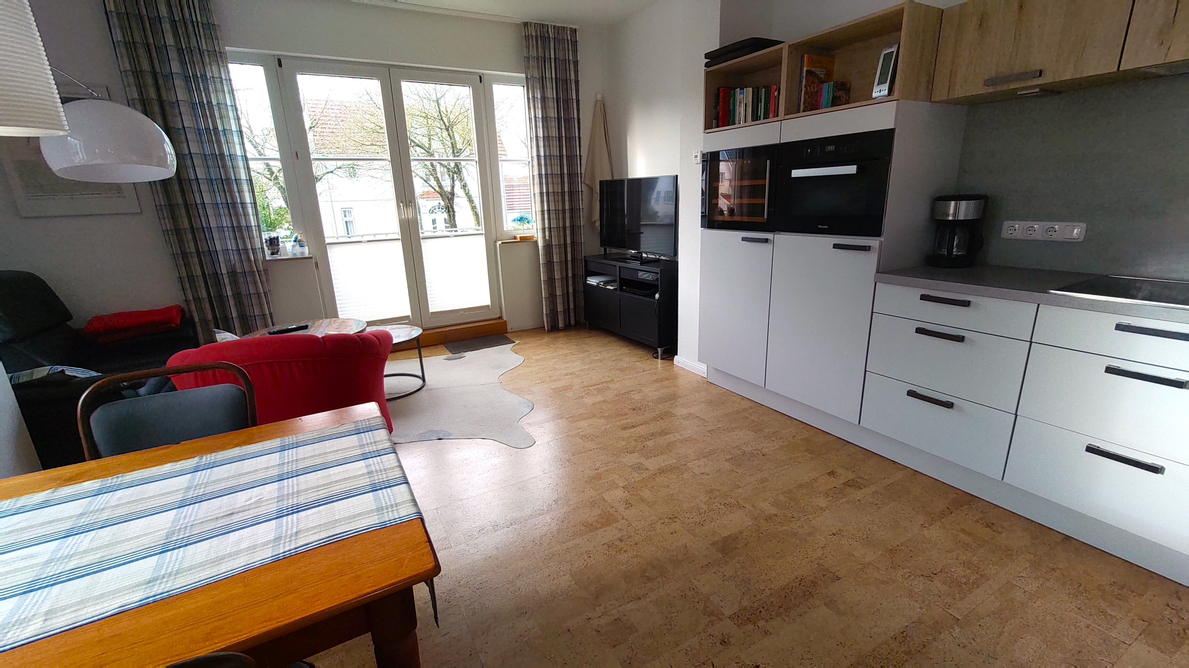 Das strandnah gelegene Stadthaus liegt am Südstrand und ist nur 200 Meter vom Badestrand entfernt. Die helle Hochparterrewohnung ist 40m² groß und hat einen schönen Balkon, den Sie vom Wohnzimmer aus erreichen können.