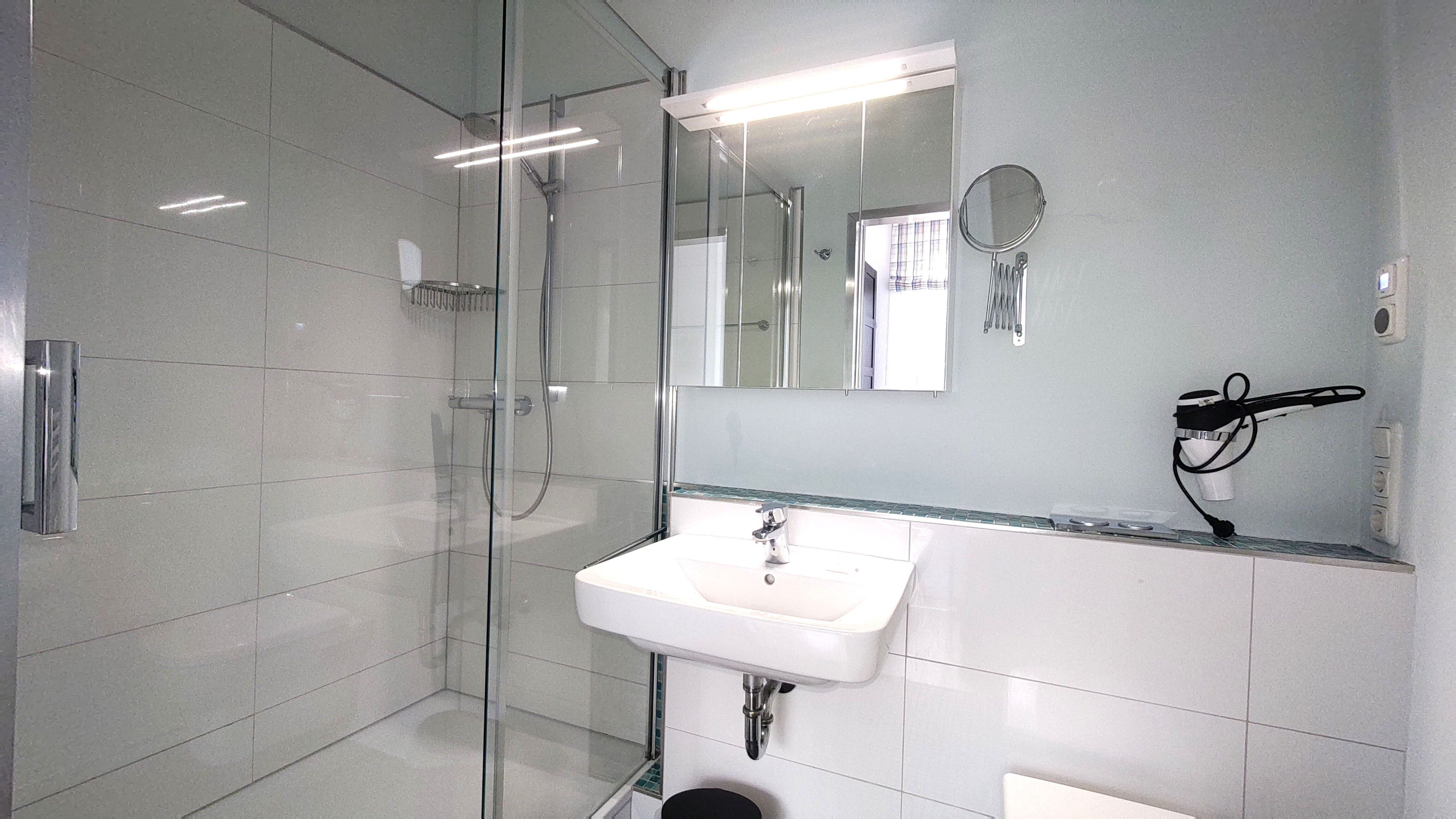 1 Schlafzimmer mit Doppelbett, 1 gemütliche Wohnküche bietet an Ausstattung alles, was das Herz begehrt, 1 Bad mit Dusche