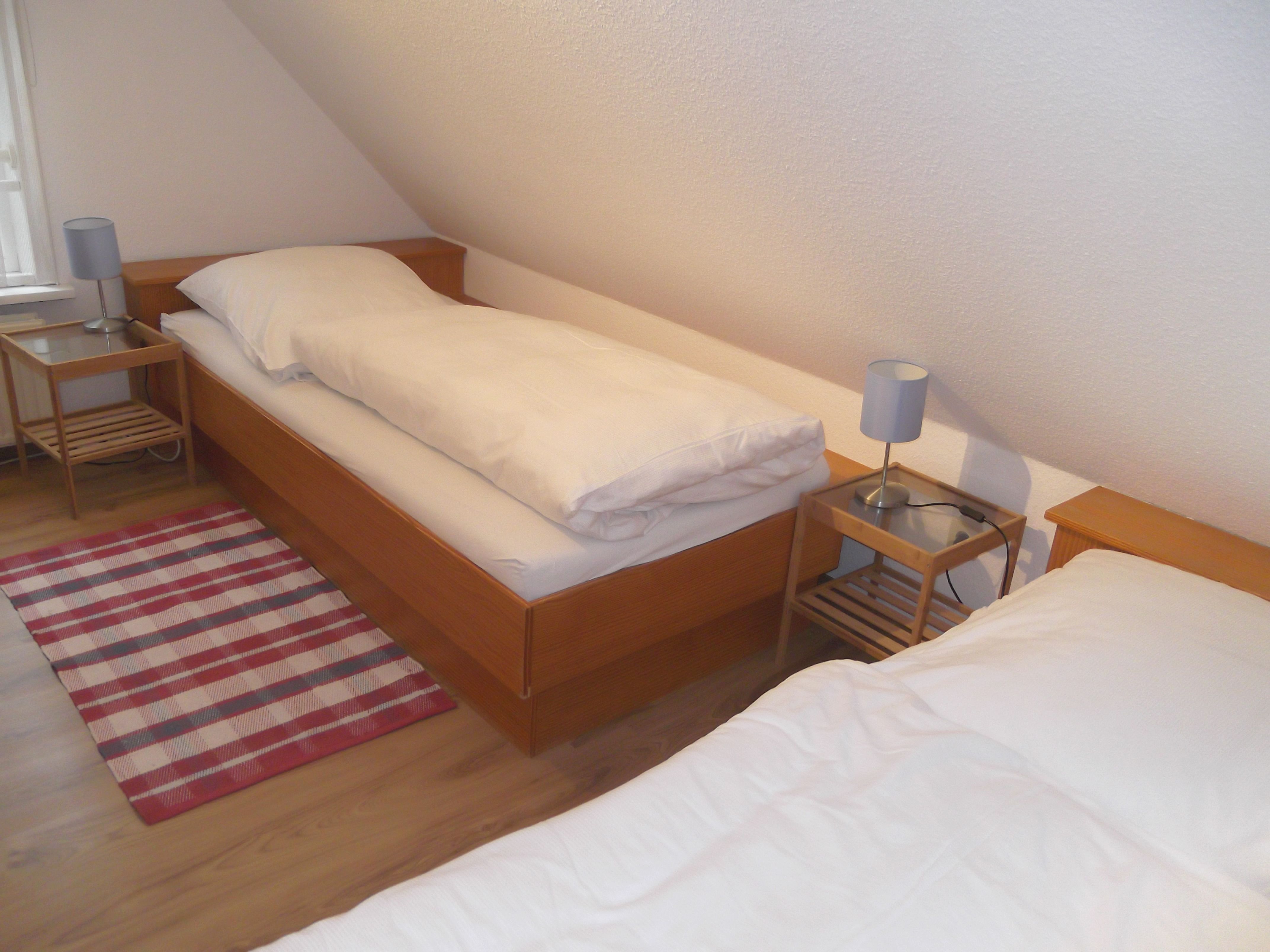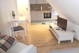 Die Wohnung befindet sich im ersten Stock, ist 30m² groß und verfügt über ein separates Schlafzimmer mit zwei Einzelbetten. In der Küchenzeile stehen Ihnen Backofen mit Cerankochfeld und Mikrowelle zur Verfügung.