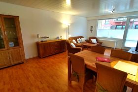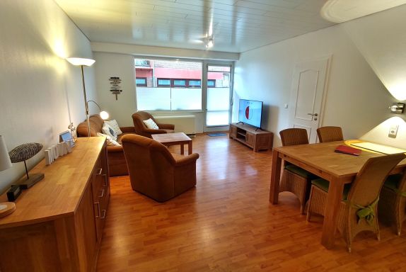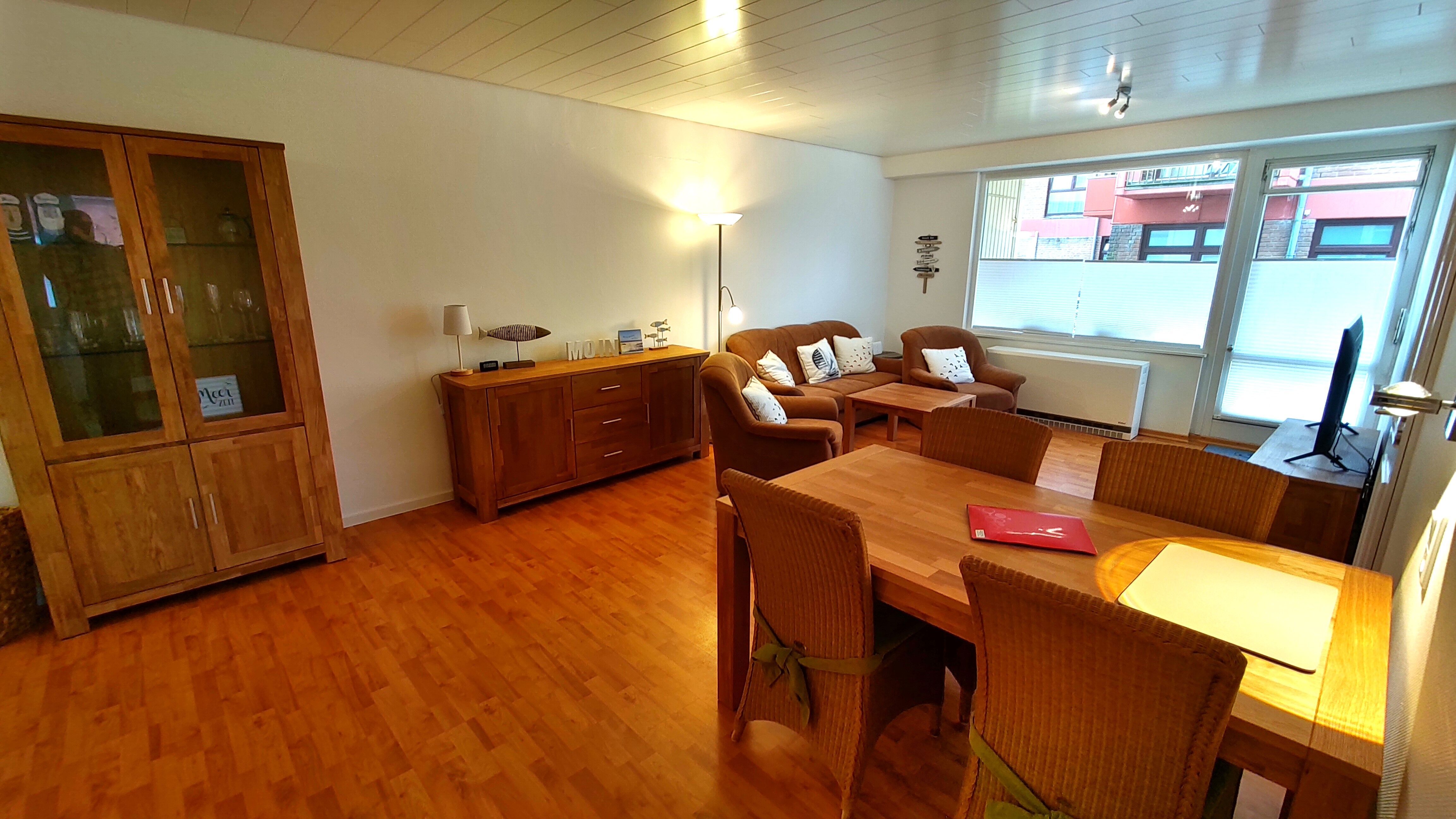 Die Wohnung hat einen großen Balkon, von dem Sie einen herrlichen seitlichen Blick aufs Meer, auf die Halligen und auf den Sandwall haben. Ein großer kombinierter Wohnschlafraum mit zwei Schrankbetten, ein separates Schlafzimmer, eine Küche und ein Duschbad bietet Platz für bis zu vier Personen. Geschirrspüler, Mikrowelle, Backofen, Toaster, Wasserkocher und Kaffeemaschine sind in der Küche vorhanden.