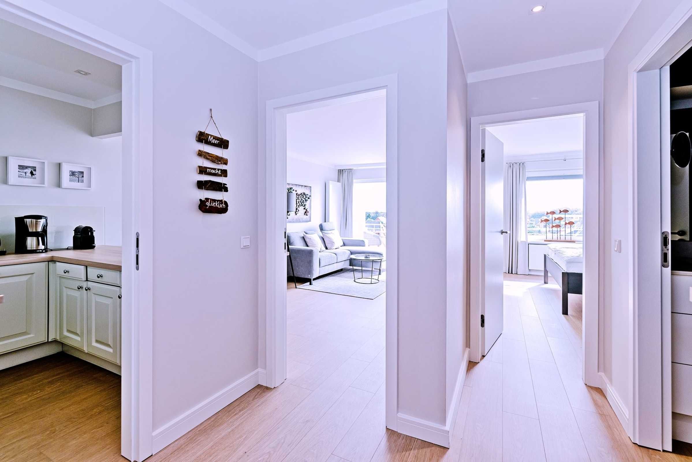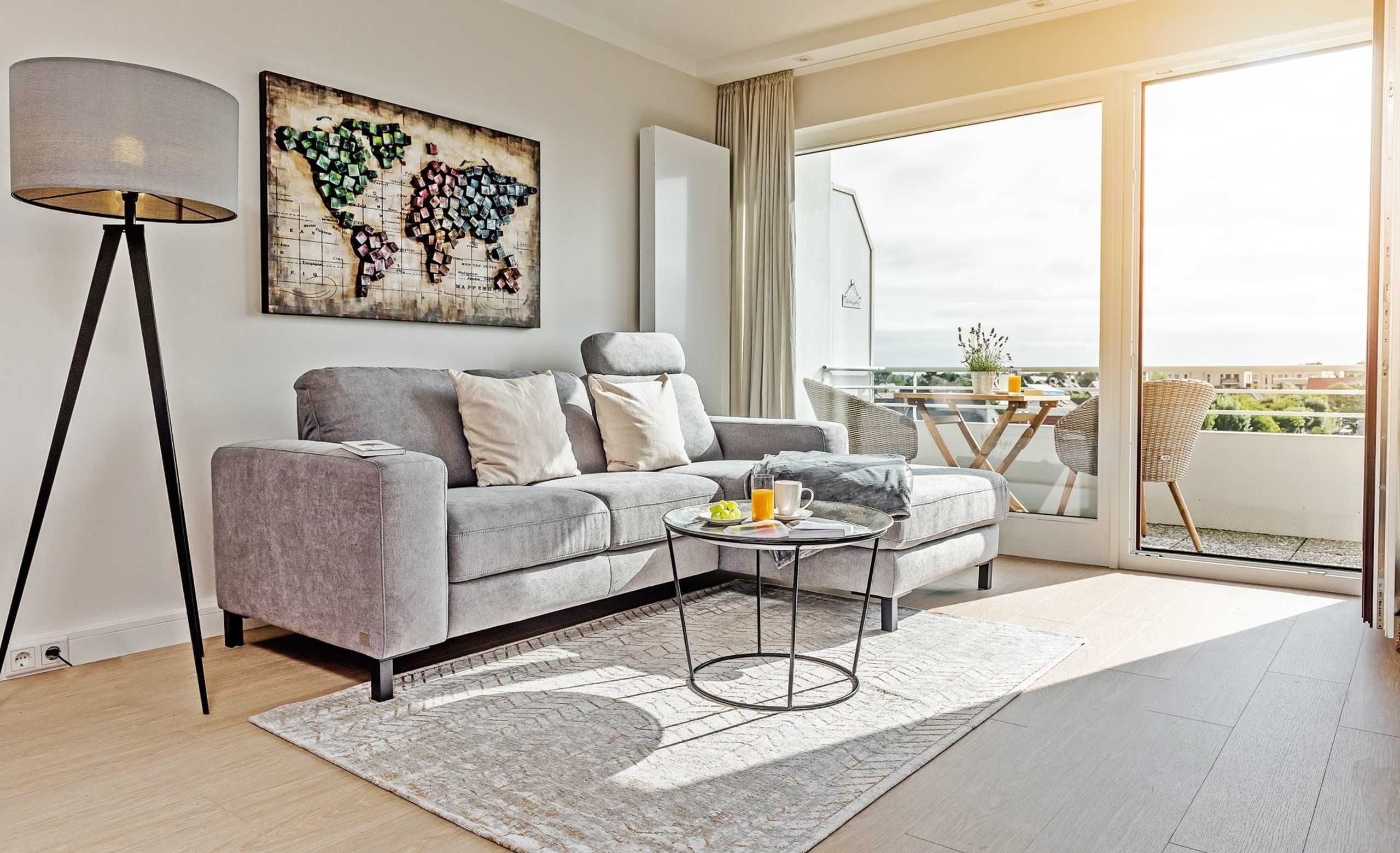Im obersten Stockwerk eines gepflegten Appartementhauses finden Sie diese bezaubernde, ca. 54 m² große Eckwohnung für 2 Personen. Das helle Domizil unterteilt sich in eine großzügige Diele mit Garderobe, ein schönes Duschbad, eine Abstellkammer mit Waschtrockner, ein freundliches Schlafzimmer mit viel Schrankraum, ein stylisches und sehr gemütliches Wohnzimmer mit separierter, voll ausgestatteter Küche und einen großen, fast 9 m langen Balkon mit bequemen Balkonmöbeln. Ihr Lieblingsplatz !