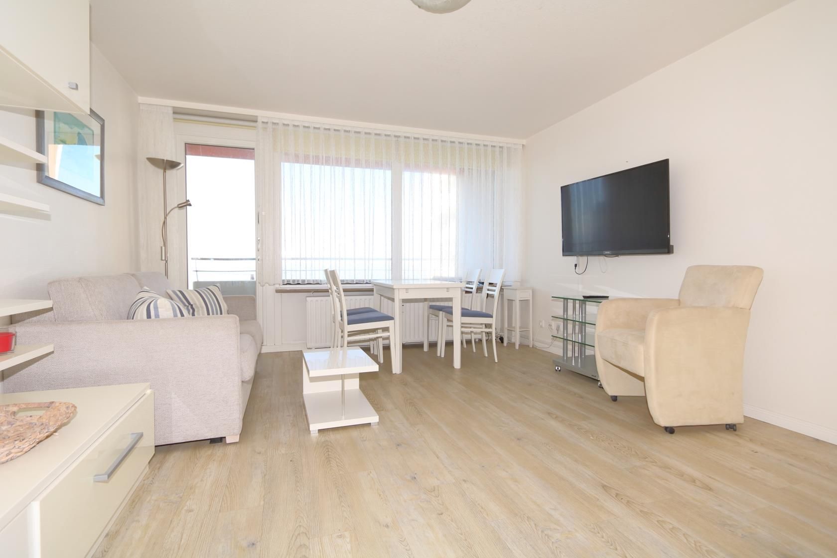 Wohn-/Schlafzimmer mit TV SAT/Kabel, W'Lan, Sofa, Eßtisch sowie Zugang zum Balkon.