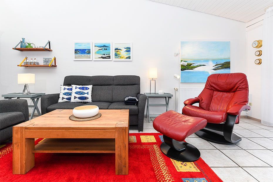 Das Ferienhaus „Auf Reede“ ist hell und freundlich gestaltet, komfortabel und modern-gemütlich eingerichtet sowie sehr gut ausgestattet. Es verfügt zum Beispiel über eine Küche mit Geschirrspülmaschine und Mikrowelle, einen Hauswirtschaftsraum mit Waschmaschine und Wäschetrockner sowie über eine große geschützte Terrasse am Wohnzimmer mit direktem Gartenzugang.