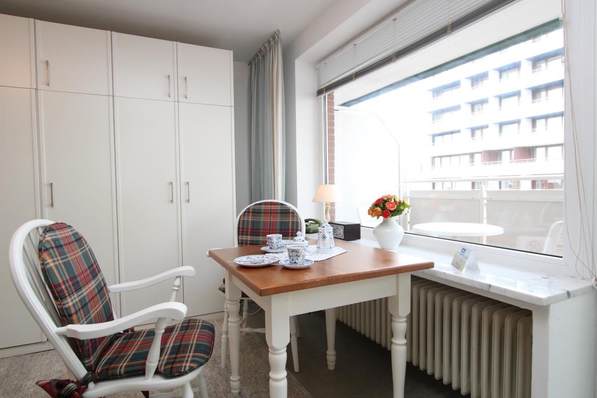 Das Appartementhaus steht gegenüber dem Kurzentrum in unmittelbarer Nähe der Fußgängerzone Friedrichstraße. Zum Strand sind es keine 100 m. Das Appartement befindet sich in der 4. Etage (Aufzug über einige Stufen zu erreichen) und hat einen Westbalkon.