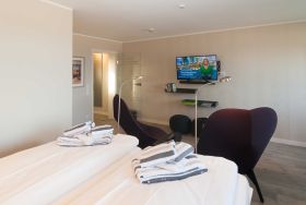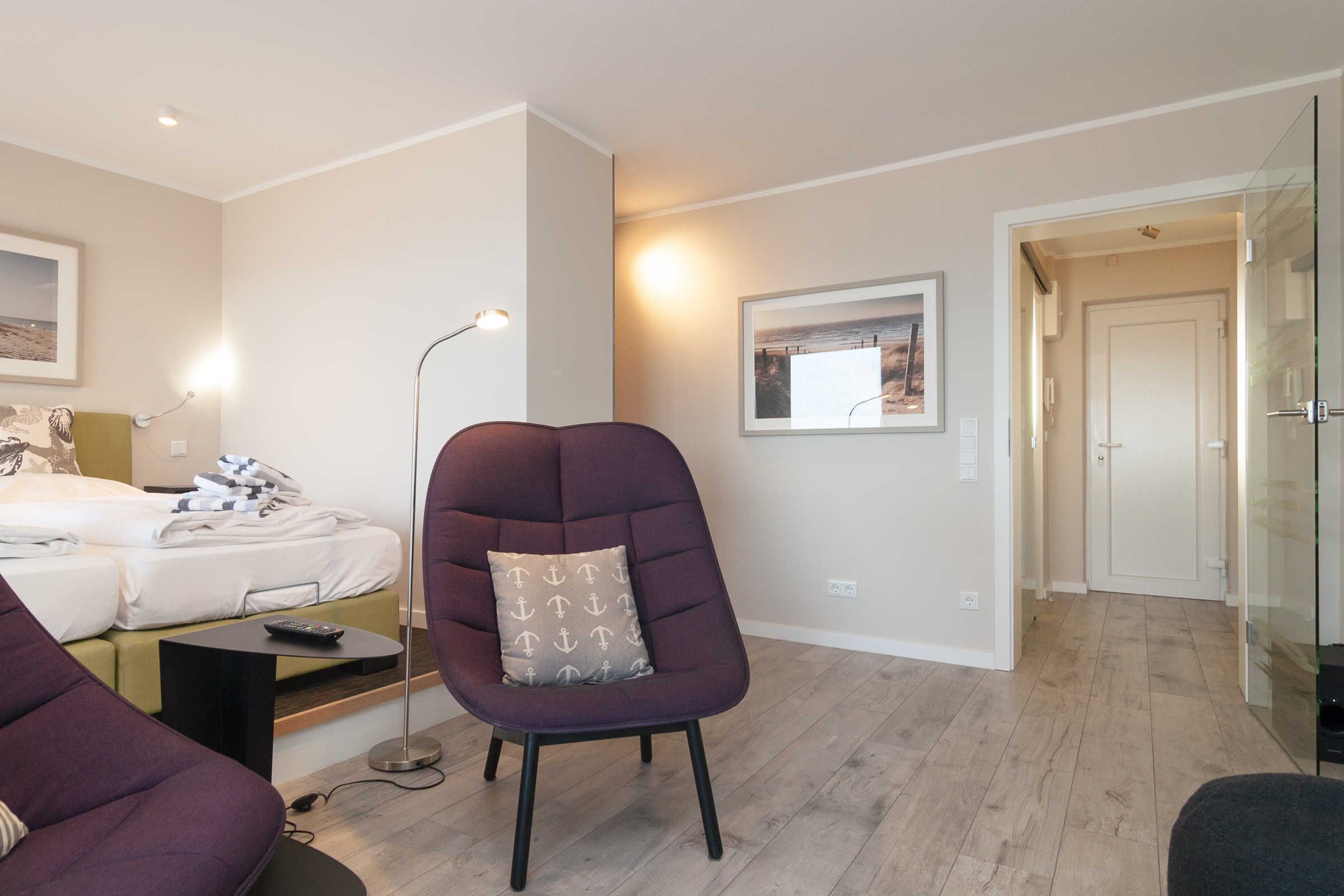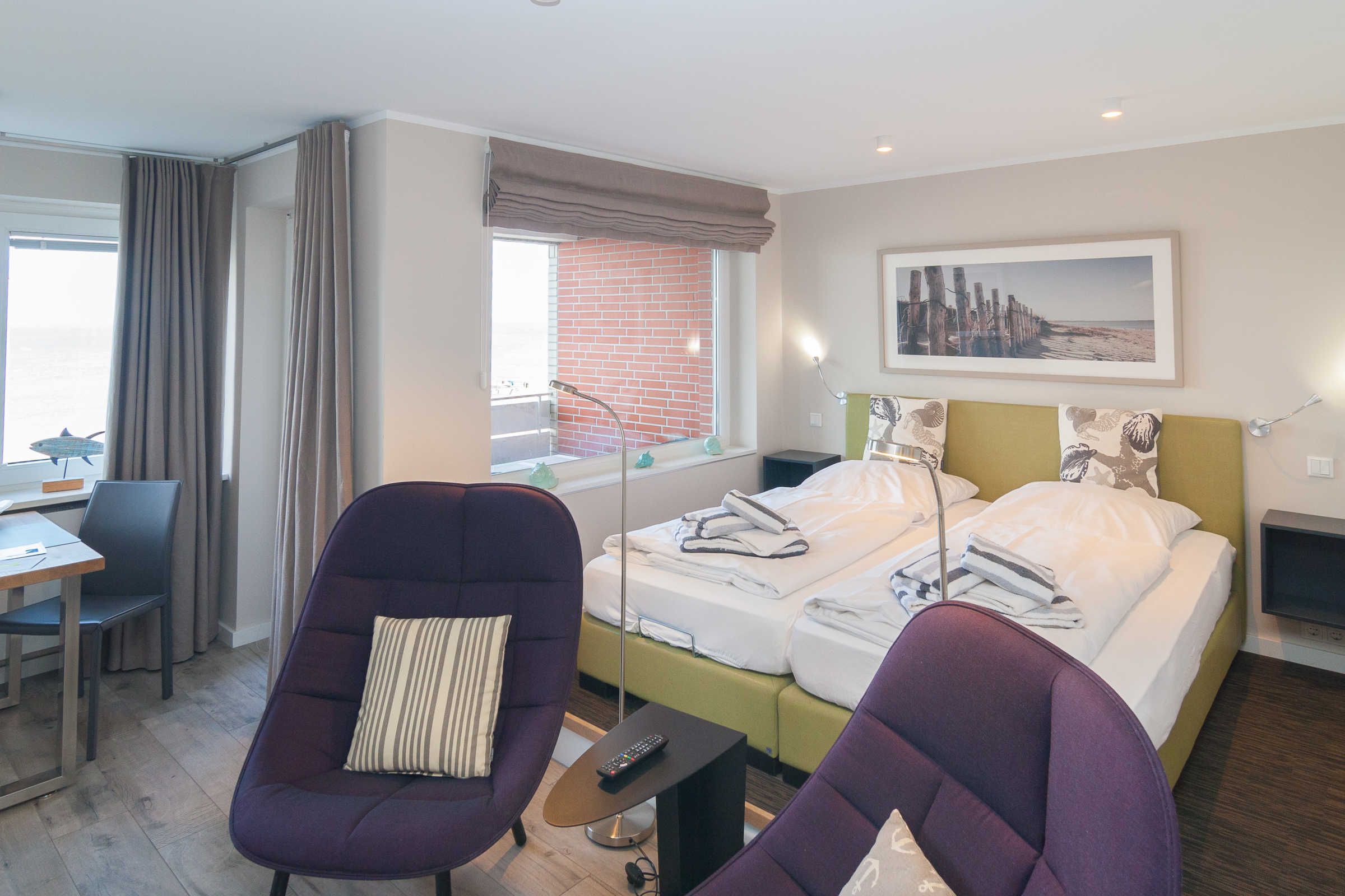 Diese Ferienwohnung mit Meerblick wurde in 2018 komplett renoviert und ist für 2 Personen ausgestattet. Sie verfügt im Wohnbereich mit einem Doppelbett, welches auf ein Podest gestellt wurde, damit man auch aus dem Bett einen traumhaften Meerblick hat. Vom Wohnzimmer aus haben Sie einen fantastischen Blick auf die Ostseite, das Wattenmeer, von Hörnum. Zur Wohnung gehört ein Duschbad und eine sep. kleine Küche, die mit allem ausgestattet ist, was man im Urlaub braucht.